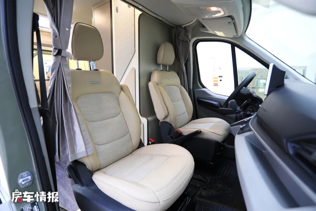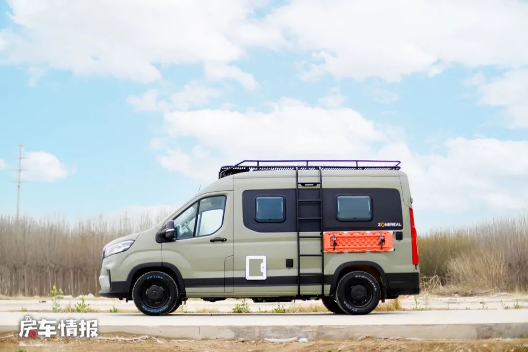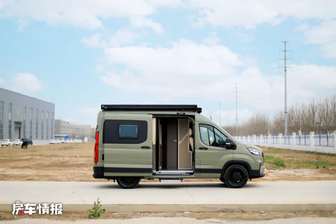 市场上大多数房车都以白色居多,很少能看到让我们眼前一亮的颜色,不过今天要介绍的这款房车就是一款采用了高级的莫兰迪绿色为主色调的B型房车。