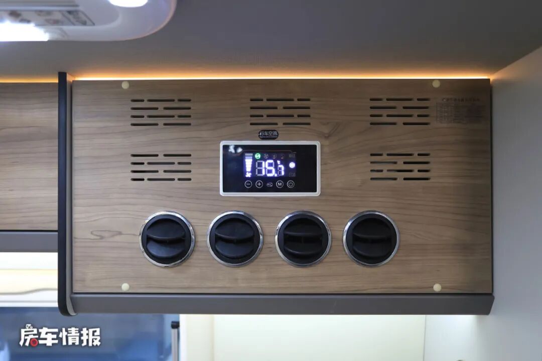 最后说一下这款房车的水电系统,电路上,全车搭载了一台3000W的逆变器,匹配400Ah的A级电芯锂电池组,采用了双电瓶智能分配隔离器,并配备了房车专用的200W太阳能电池板,另外车内还提供了usb充电接口、游艇级阅读灯以及其他多个照明设施。水路上,则提供了100L的净水箱和50L的灰水箱,而冷暖系统上是配备了房车专用5000W的柴油暖风热水一体机,并匹配了一台24V的直流变频空调。整体来说,水电以及空调方面还是可以满足基本需求的。