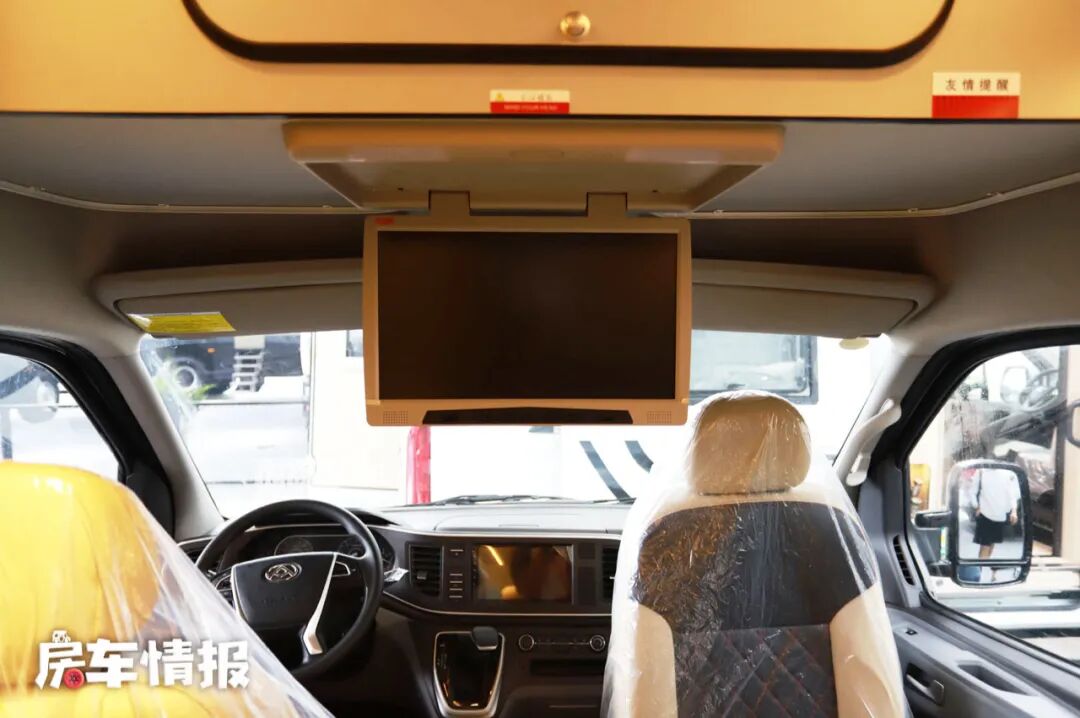 会客区顶部带有排风扇,可保证车内的空气流通。另外在前方驾驶室的顶部还带有一台19寸的吸顶WIFI电视,平时可以在驻车的时候看看电视放松一下。