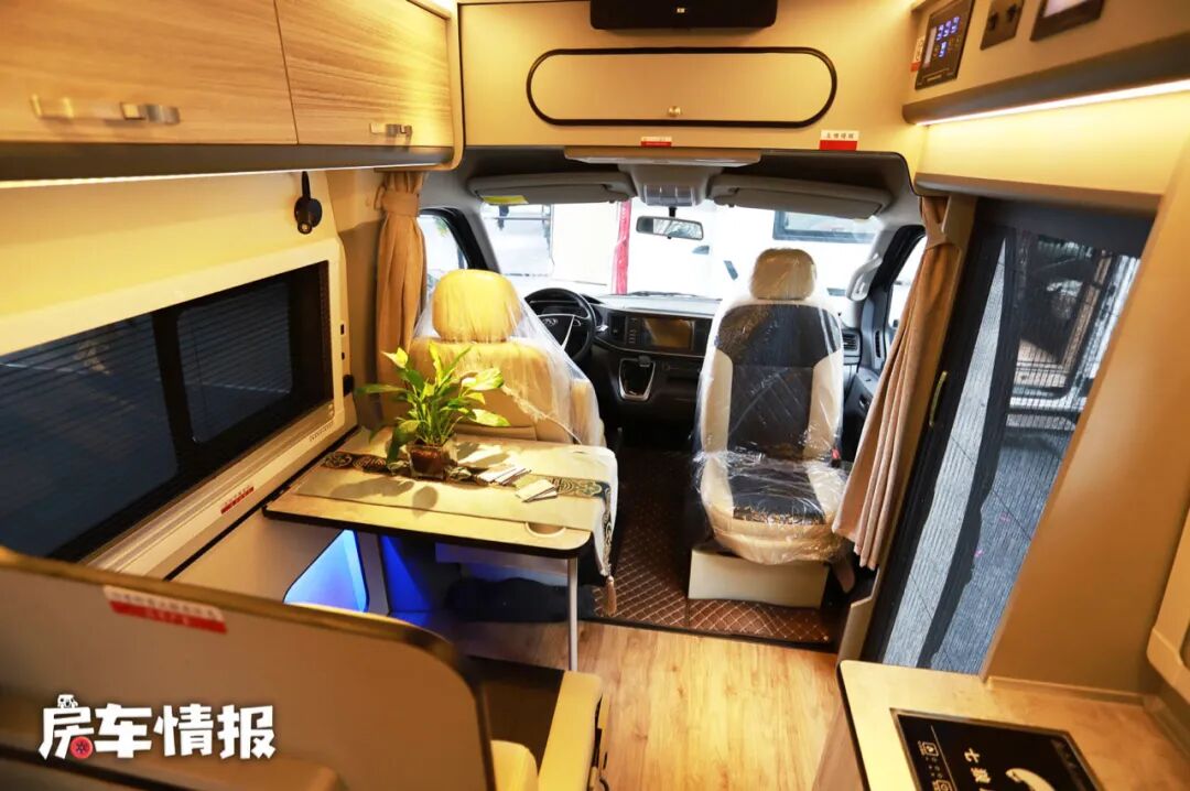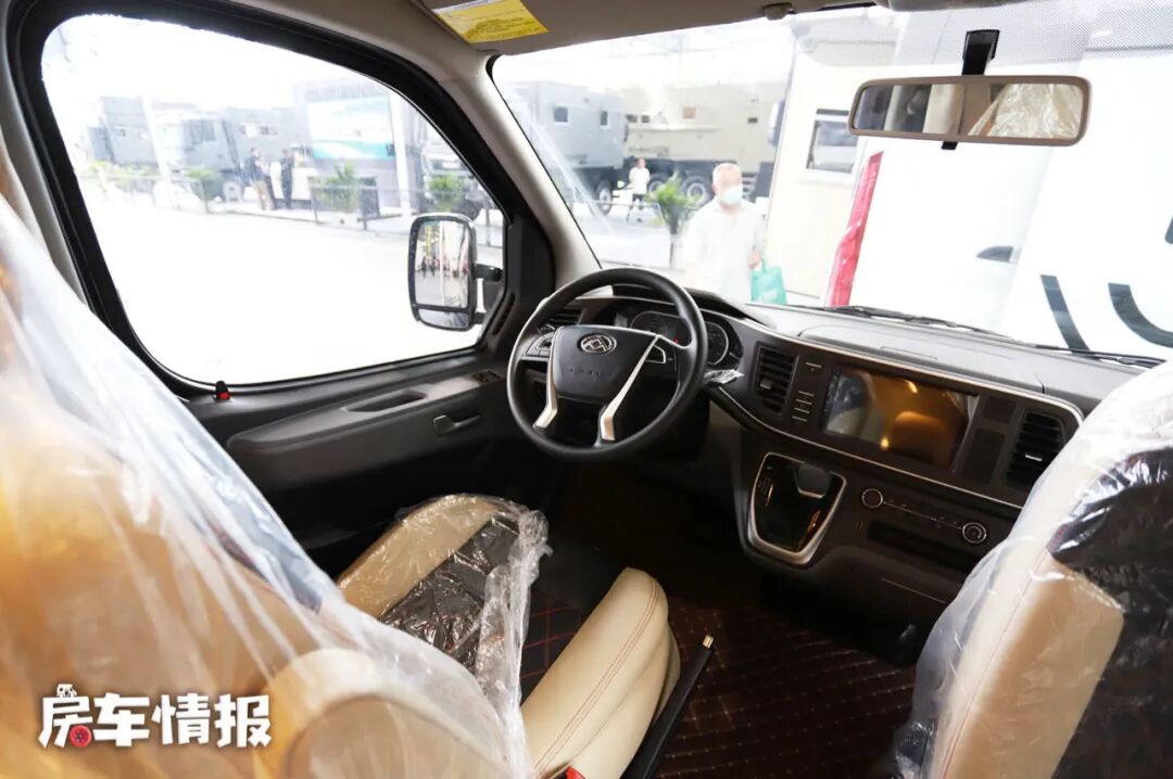 驾驶室保留了原车原貌,匹配多功能方向盘和中控触控彩色大屏,同时副驾驶座椅还带有可向后旋转的功能。