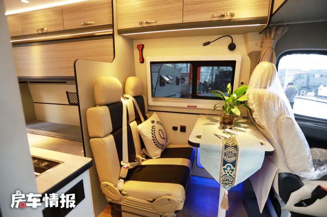 另外会客区的座椅采用了乘用车级别的座椅,带有靠背调节功能,并配有安全带,所以整辆车在行驶过程中最多可以坐4个人。