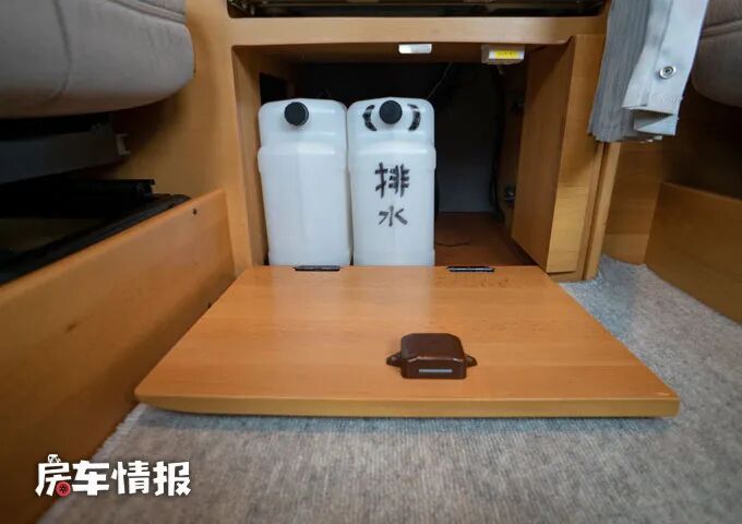 水电方面,这款房车搭载了一台1500W的逆变器,提供2块100Ah的子电池;水路上则提供了12L的净水箱和12L的排水箱。