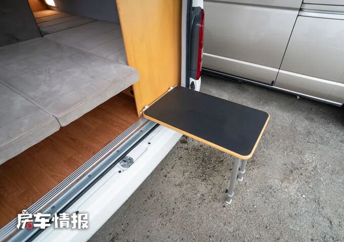 车厢尾门为上开形式的,下方带有一个可放置小桌板的轨道,平时有车外用餐的需求,也可以将小桌板移至在尾门处。
