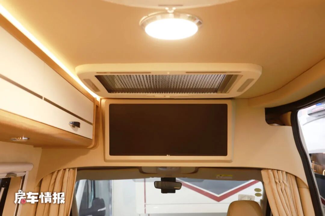 在前方驾驶室的下方还提供了一台29寸的液晶电视,平时坐在或躺在沙发上看看电视也很享受。