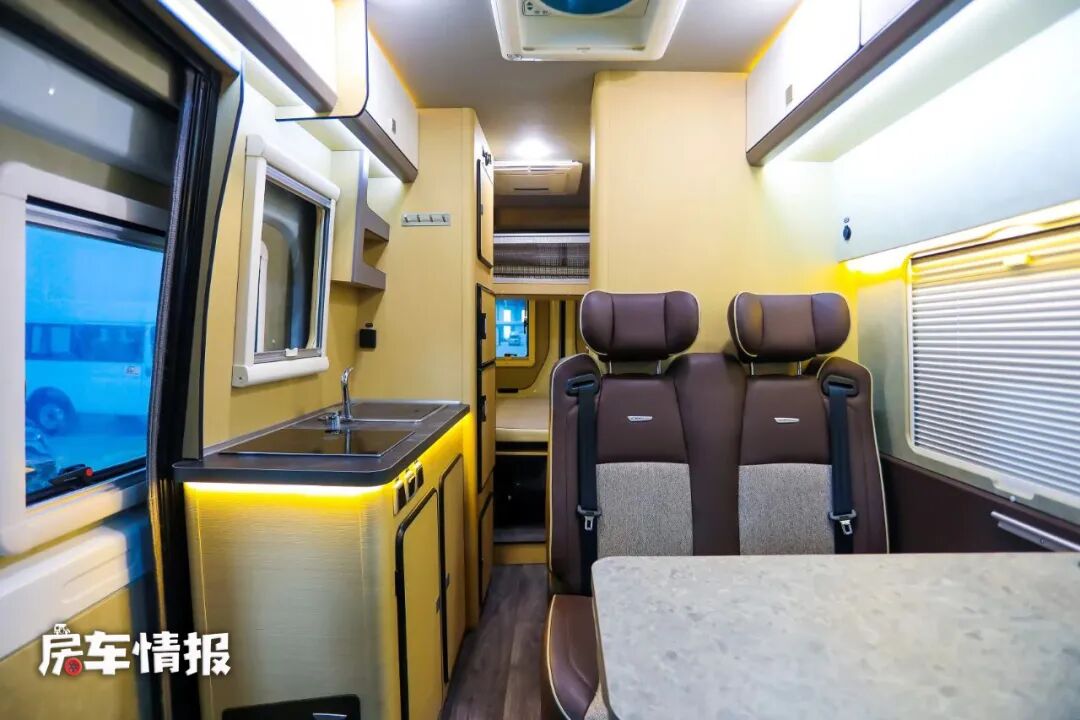 动力上,这款房车搭载了一台上汽π2.0T的柴油发动机,匹配6AT变速箱,后期也可选装6AMT,采用后驱系统,最大功率为110kW,最大扭矩为375N·m,满足国六排放标准,持C本驾照就可以驾驶。