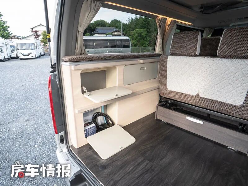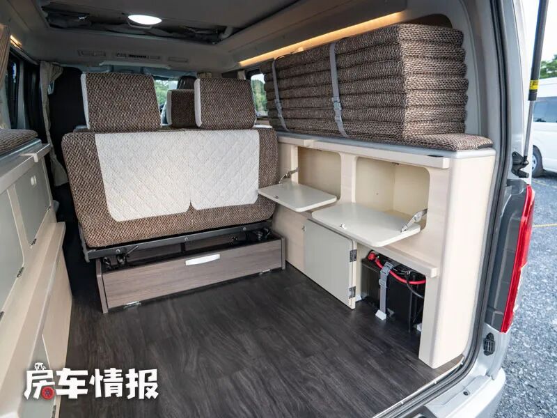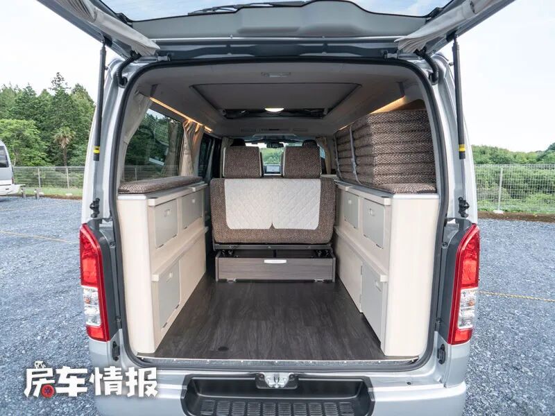 车厢尾部平时可以用作储物空间使用,即便晚上睡觉休息的时候,也可以在床垫下方放置一些扁平的行李。
