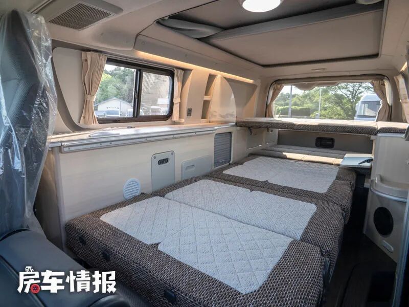 另外柜体上的空置区域也可以存放平时睡觉用的床垫,但是行车时需要固定好,以免发生危险。