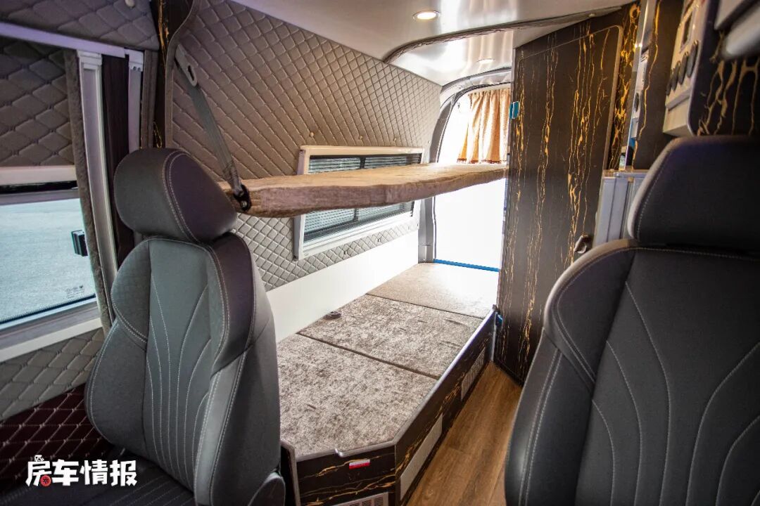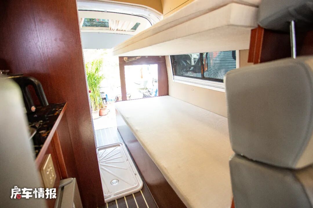 车厢后方则提供了一组上下双层单人床,尺寸约为2000*750mm,分别可以睡下一名成年人,舒适性也还不错。