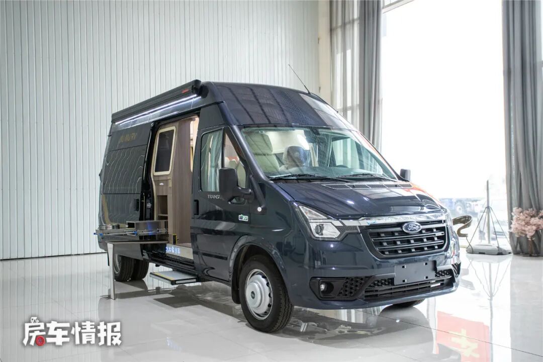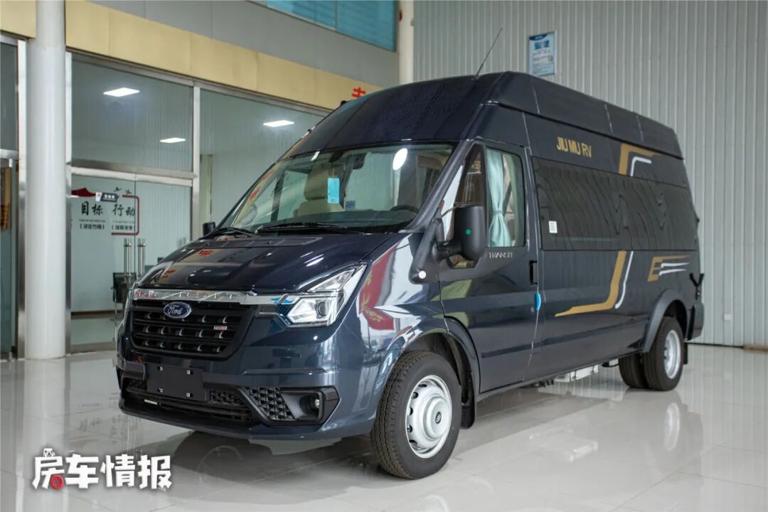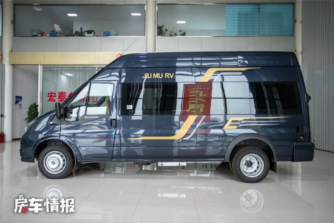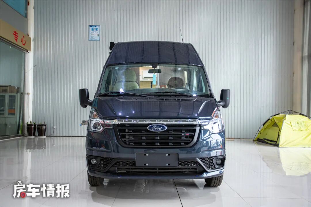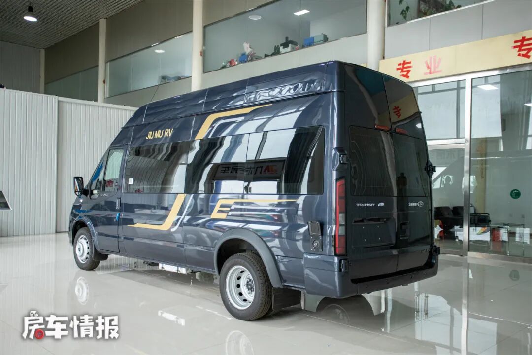这款新车由九木房车基于江铃福特新世代全顺Pro加长轴超高顶底盘打造而成,作为一款标准的自行式B型房车,新车在外观上依然是延续了普通版车型,商务、沉稳的设计风格,行驶在路上比较低调。