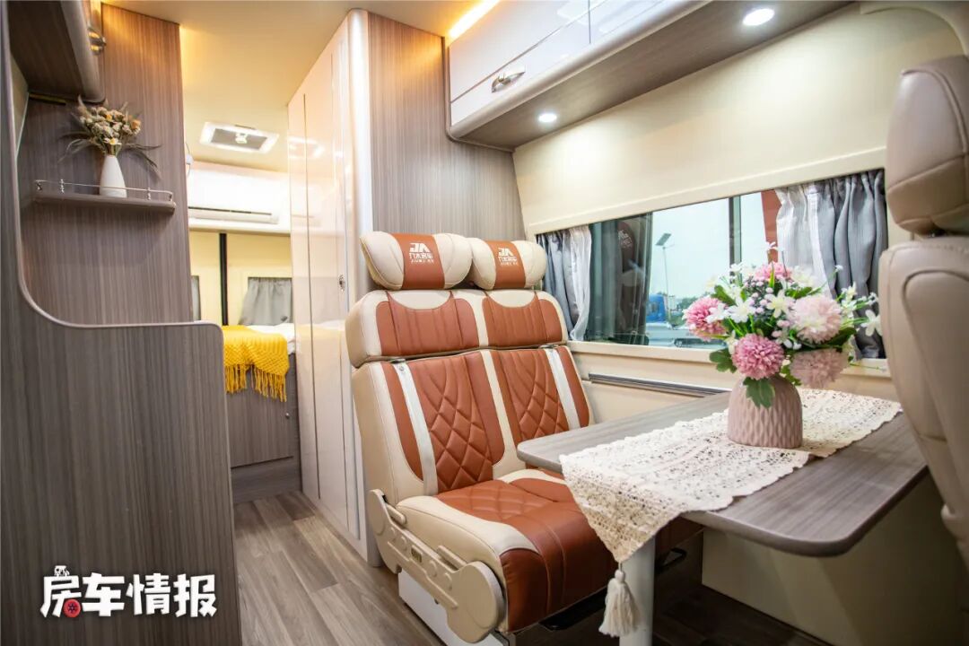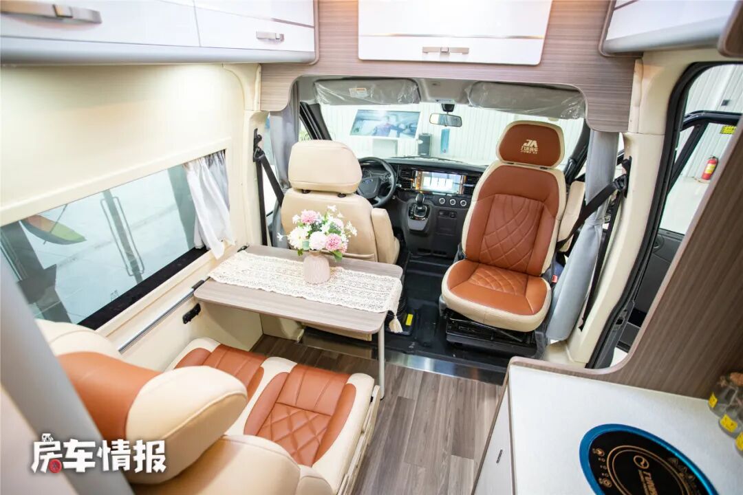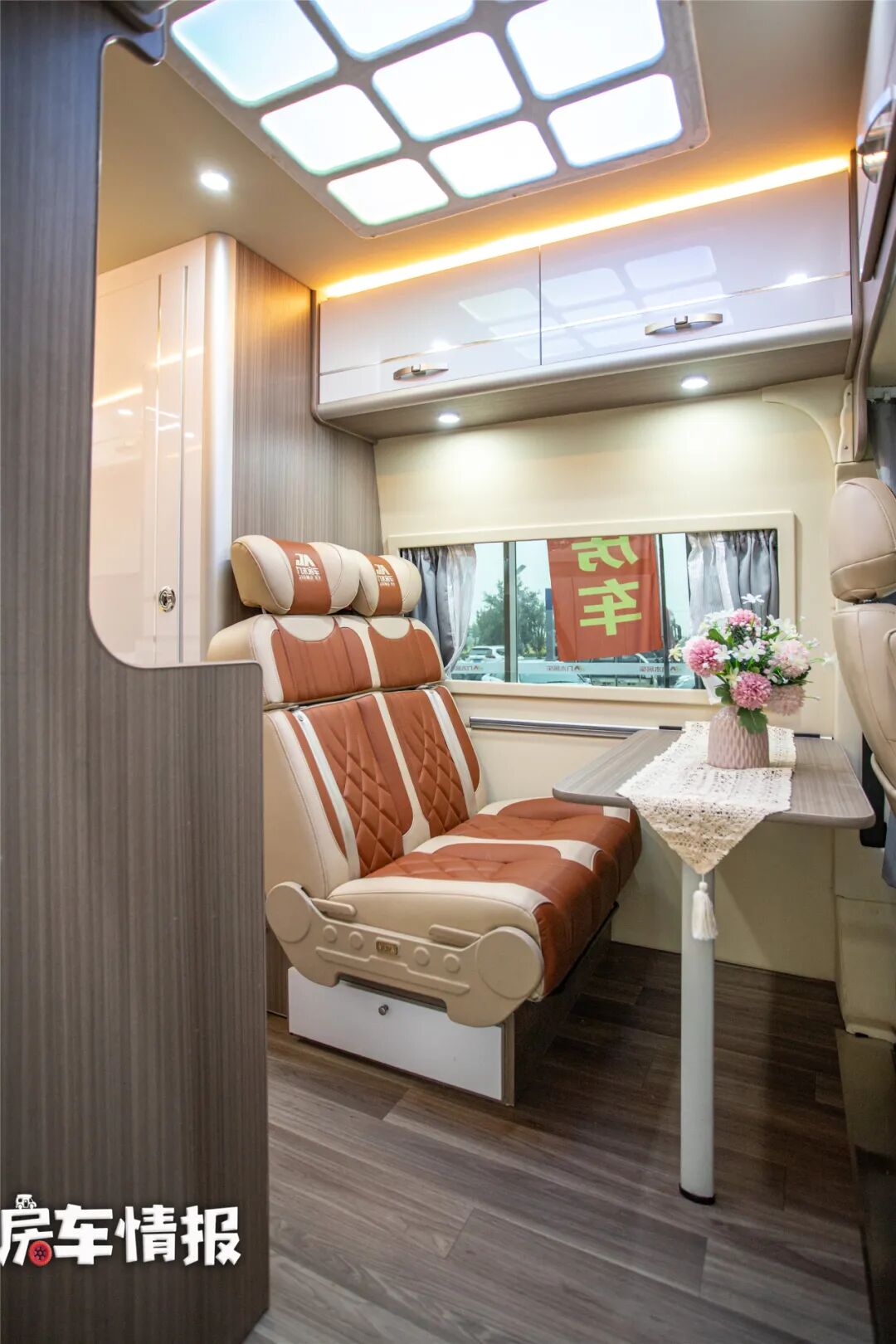 在车身尺寸方面,新车长宽高分别为5995*2098*2820mm,轴距3750mm,基本上和依维柯B型房车表现相当,不足6米的车身长度满足C本蓝牌驾驶,2098的车身宽度对于日常驾驶的灵活性也有一定帮助。