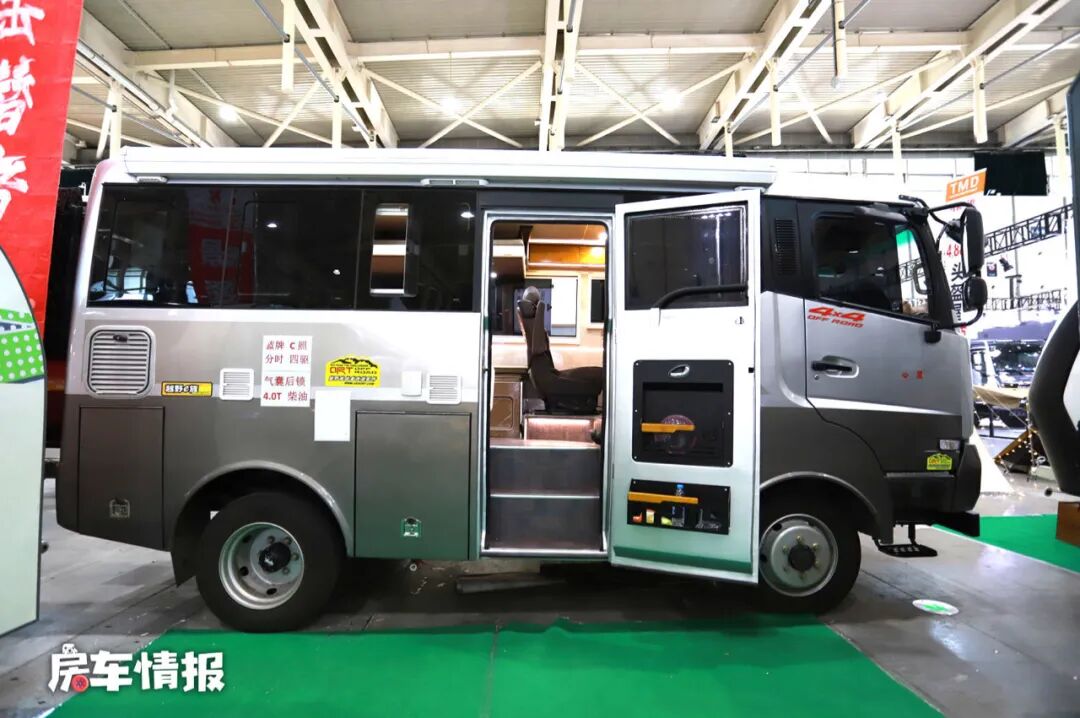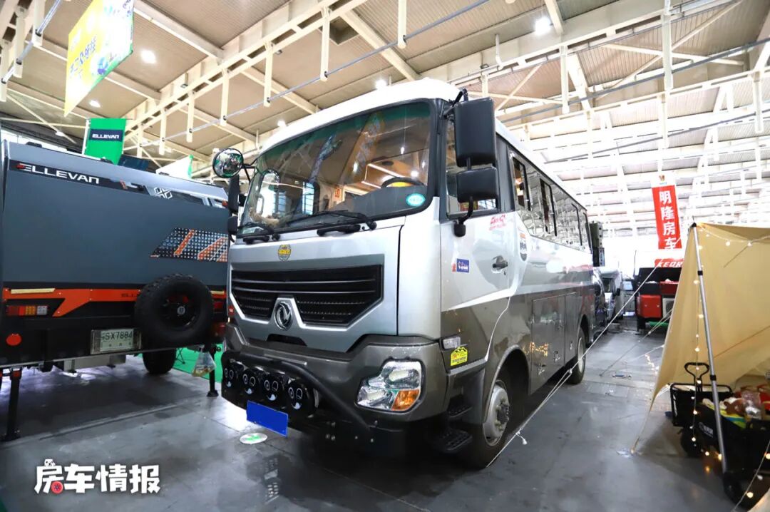 有网友之前在后台留言,希望我们可以介绍一下东风四驱客运版房车,正巧前两天在逛展会的时候我们在现场看到了这款实车,所以现在赶紧给大家安排一下~