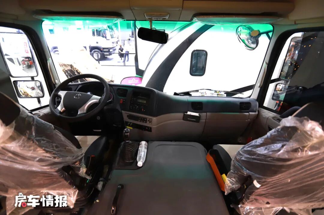 驾驶室内部的设计让我想起来小时候乘坐的前置发动机的公交车的感觉,主副驾驶座椅采用的是气囊减震座椅,乘坐起来还比较的舒适,动力上这款房车搭载了一台4.0T的潍柴发动机,匹配6速手动挡变速箱,采用分时四驱系统,还带有后桥差速锁,平时持C本就能够驾驶,要知道这款车的两驱版本是专攻勘探队等特殊工种使用的~