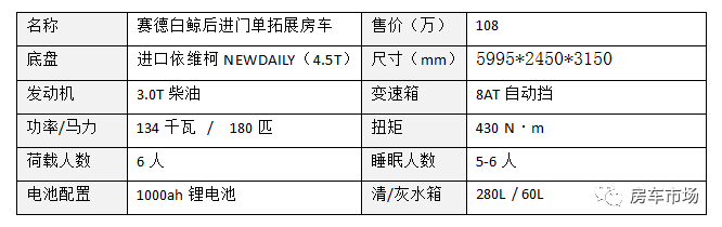 喜欢C型房车尤其看重水电配置的车友,一定多看看赛德的车型,赛德房车白鲸系列车型比较成熟,特别是在水电方面配置比较高,深得一些车友的喜欢和信任。在底盘方面主要以依维柯为主,近期推出新款后上门单拓展车型,采用进口依维柯NEWDAILY底盘,整车标配售价:108万元。