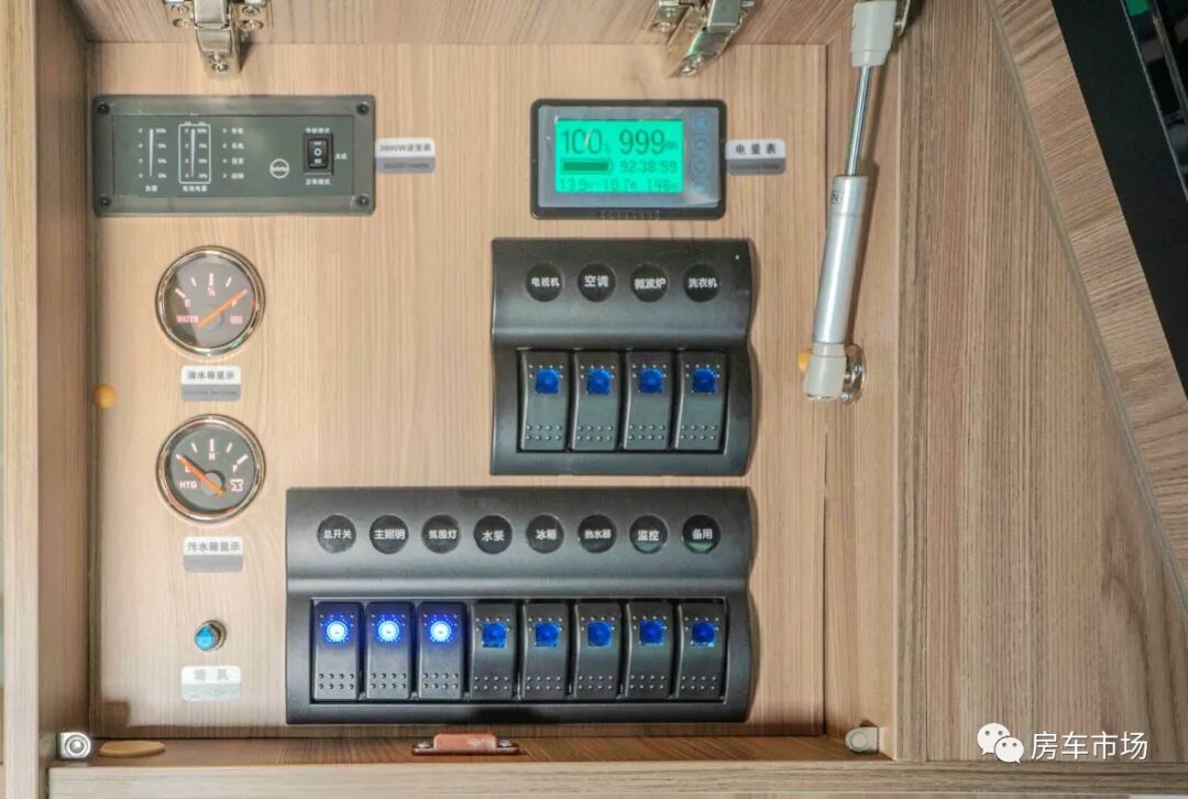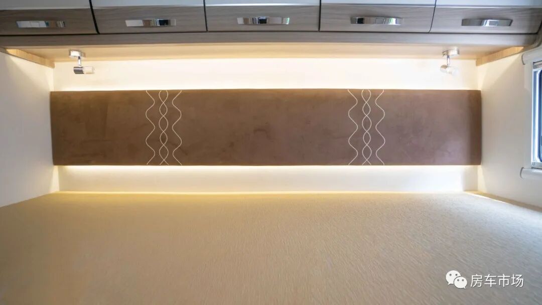 尾部是一张横置双人床,顶部安装有一排吊柜,头部设计有灯带,内侧有外推窗。虽布局紧凑但设计合理。在上车门的一侧设计有鞋柜,上部的柜子打开之后就是该车的总控,配有逆变器以及车内电器设备的开关等。这款赛德依维柯无拓展房车的标配价格是47.8万,而且赛德白鲸全系车型还包括单拓展车型以及双拓展车型(车型不同价格不同),车友可根据出行需求灵活选择。