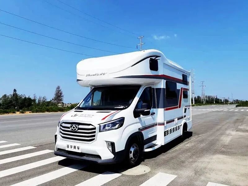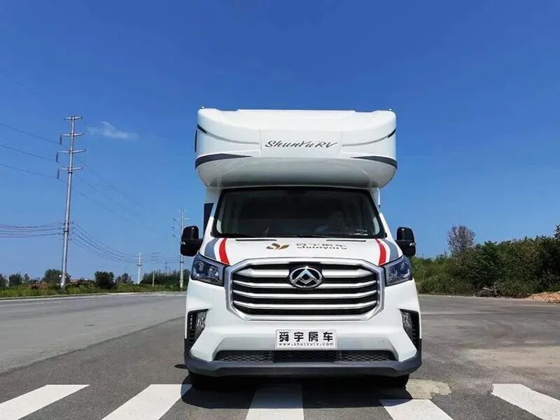 舜宇新车是基于大通V90二类底盘改装而成,搭载2.0T柴油发动机,国六的排放标准,最大功率110KW,峰值扭矩375N.m,传动系统匹配6速手动挡变速箱(可选自动挡),整体的动力总成及乘驾体验感不亚于国产依维柯底盘房车。