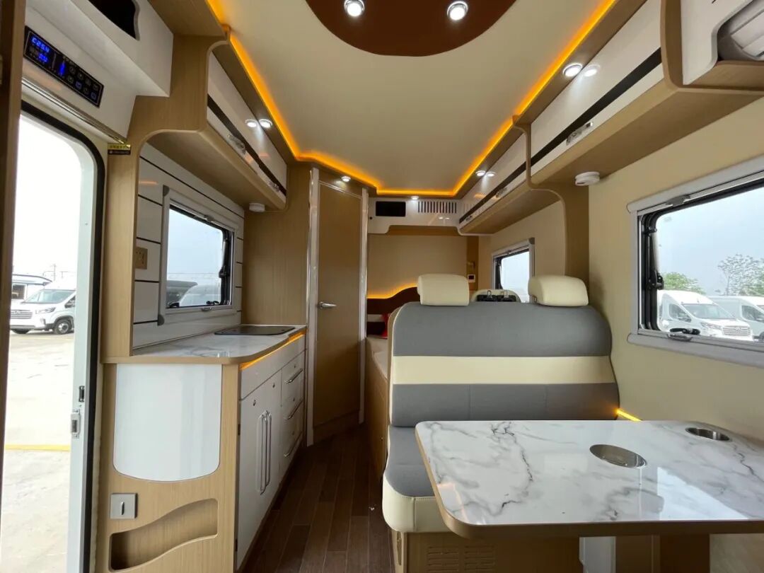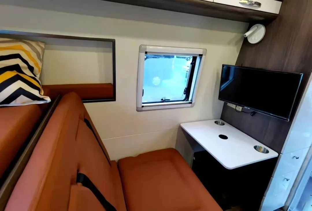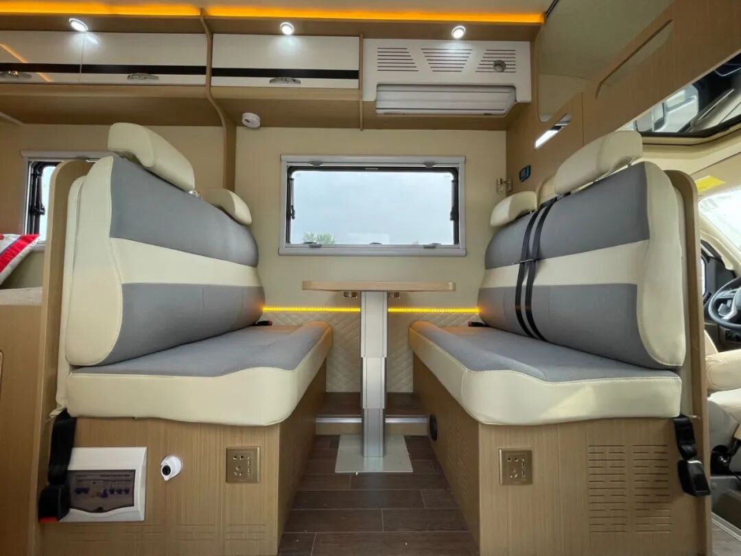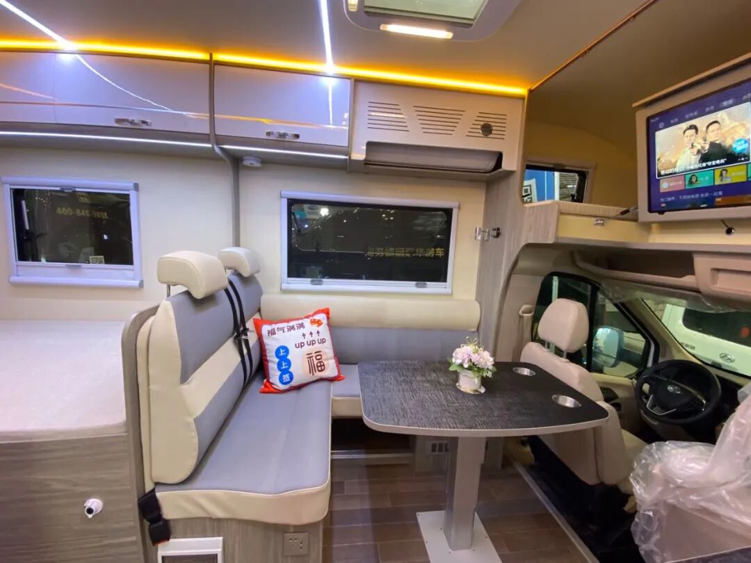 ● 对向卡座加后置纵床的布局,采用爱旅途经典款布局,爱旅途房车可以定制房车,打造个人专属布局;