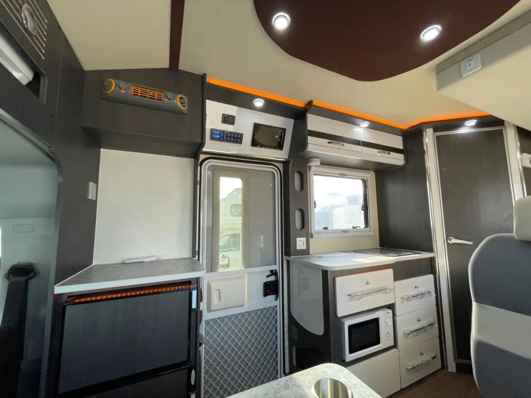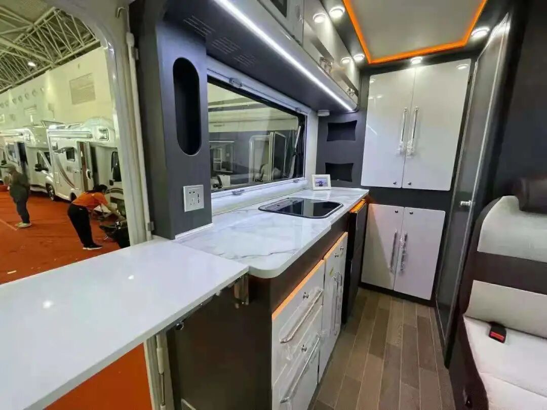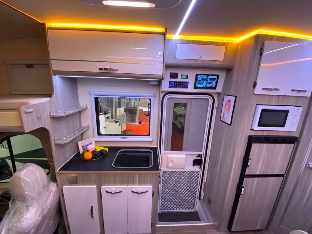 ● 水电配置:120L清水箱、60L灰水箱;3000W逆变器、800AH锂电池、400W太阳能硬板、库仑计、12V控制面板、烟雾报警器、热水暖风系统等。