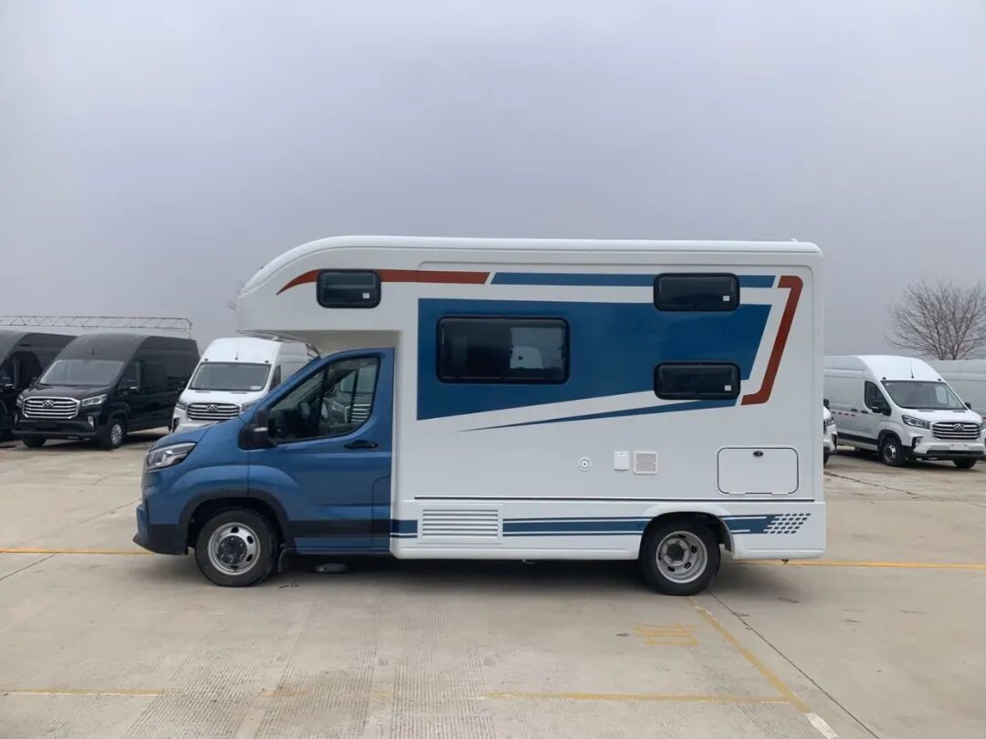 ● 房车外观采用清新的蓝白色系搭配,整车看起来清爽大方;