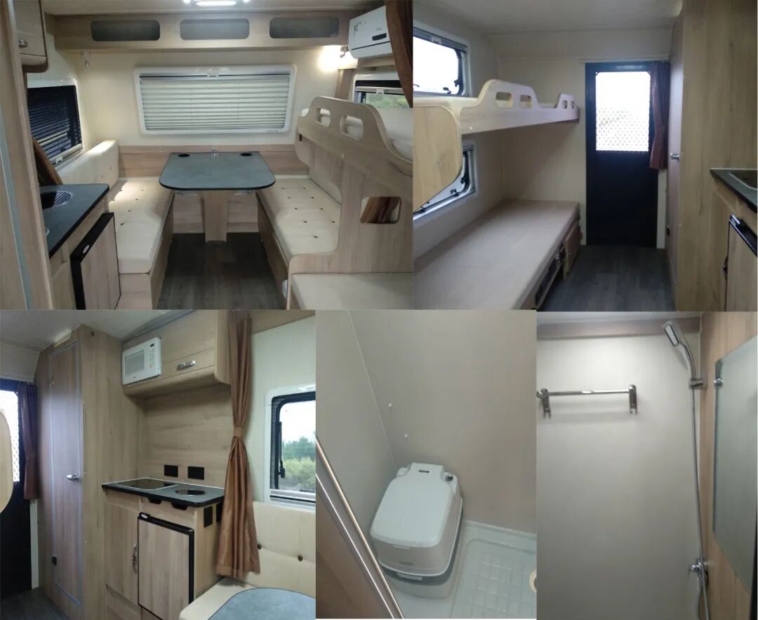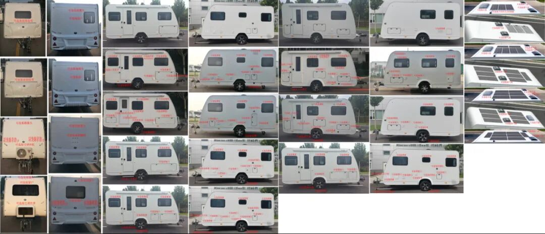 1.该车非乘用车,行驶过程中不载人;2.车内安装有床铺,桌椅,储物柜,厨具,多媒体设施,卫生设施等旅居专用设备,3.选装电动遮阳棚、电动升降桌、冰箱、洗衣机、音响、功放、内部推窗。4.中置轴挂车的牵引杆深入量(mm):45;中置轴牵引杆连接器最大负荷(kg):180;5.车厢顶部封闭且不可开启.