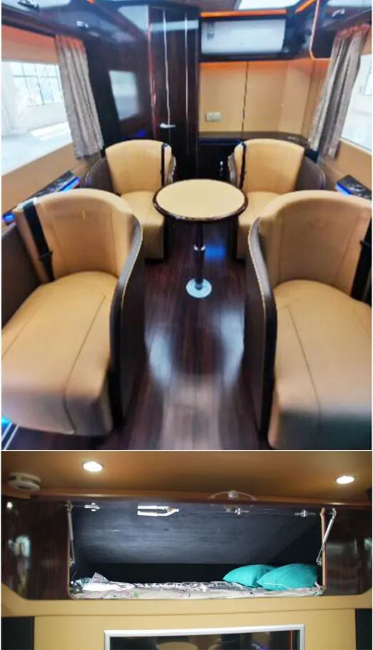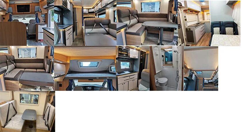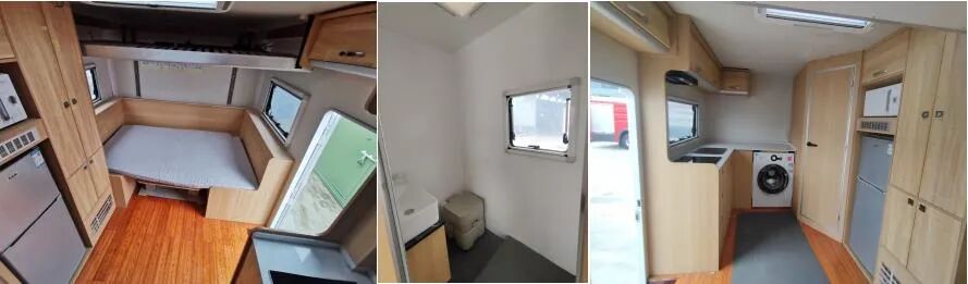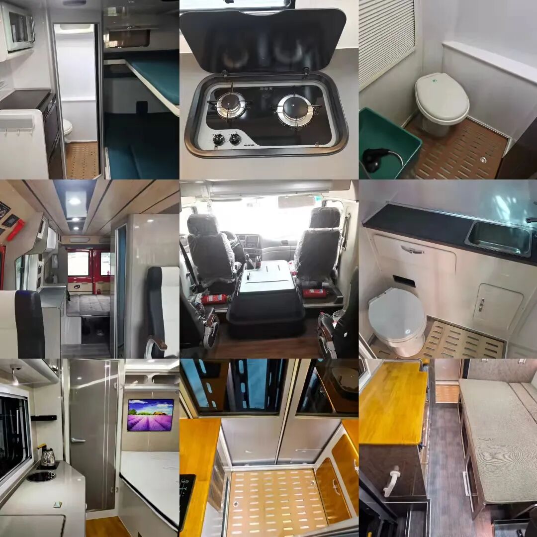该车型基于进口福特全顺底盘打造,搭载猛禽同款3.5T+10AT动力总成;配备厨具、卧具、卫生设施、供排水设施、电气设施等旅居生活设施和娱乐设施等专用装置,用于旅居宿营;车顶选装换气扇(车高2628mm),选装遮阳帘、轮辋;内部选装储物吊柜、电磁炉、马桶、微波炉、沙发床、洗手池、小桌板、休闲器具、内部隔断、内饰;