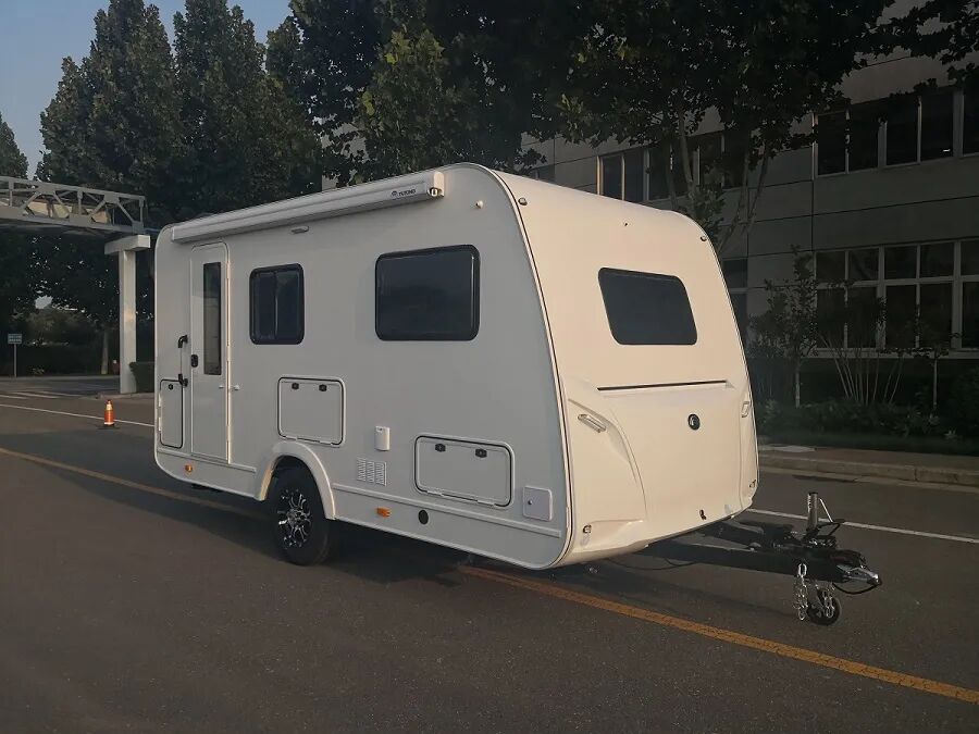 中置轴旅居挂车的牵引杆深入量(mm):65mm;牵引杆连接器最大负荷(kg):70kg;车内装有卧具、厨具、卫具等必要旅居设施。