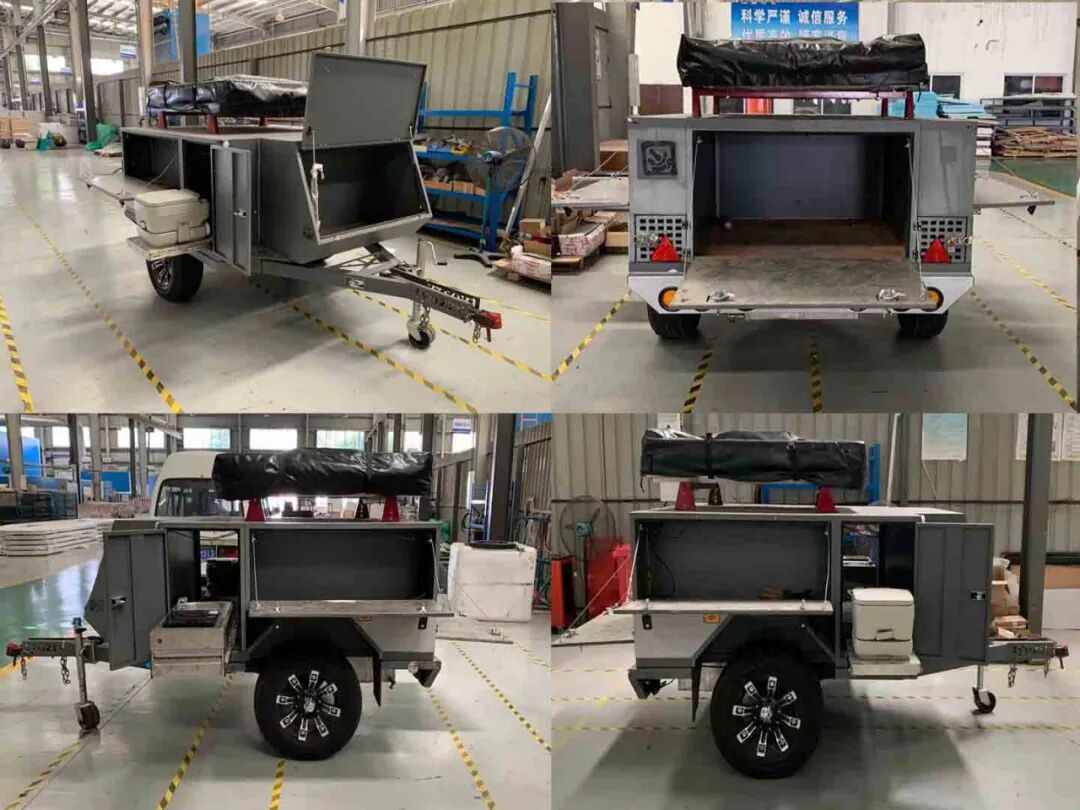 该旅居挂车在旅居者自驾游过程中,需要拉一些旅行随身物品和一些给养及换洗衣物(3-4人物品),故需要140Kg的额定载质量来满足旅居者的需求。 选装描述:1.车厢顶部封闭,不可开启;2.本车为非乘用车,行驶过程中不载人;3.厢体内安装有床铺桌柜卫生家电炊事等设施;4.遮阳帘为选装件,选装时整车宽度为2335mm,未选装时整车宽度为2240mm;5.根据内部布局选装舱门位置及大小;
