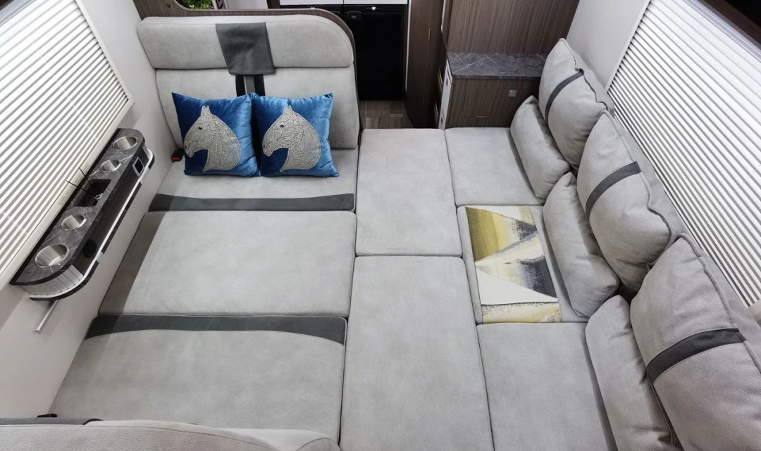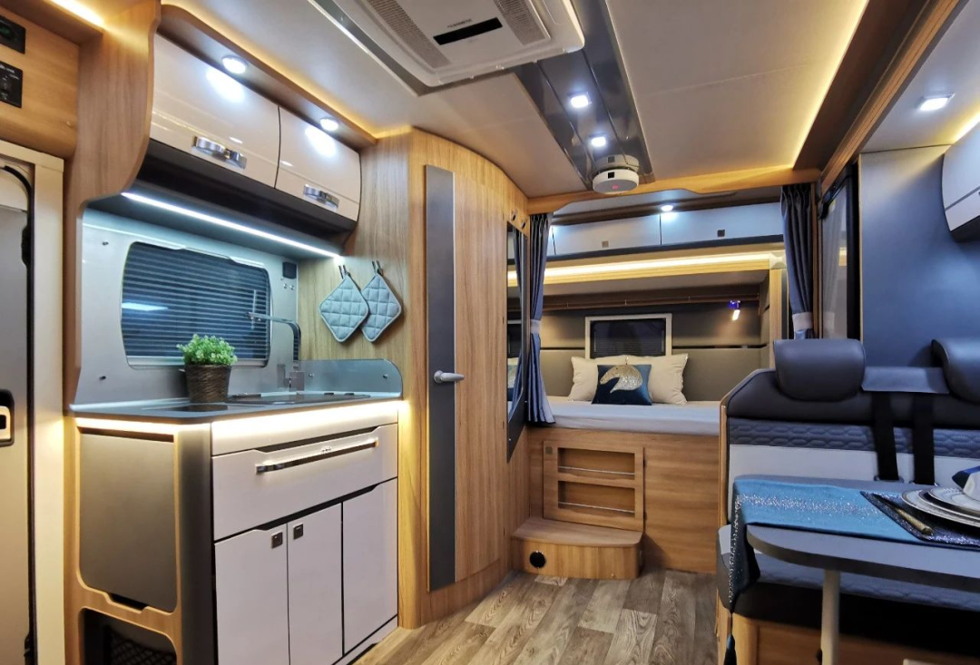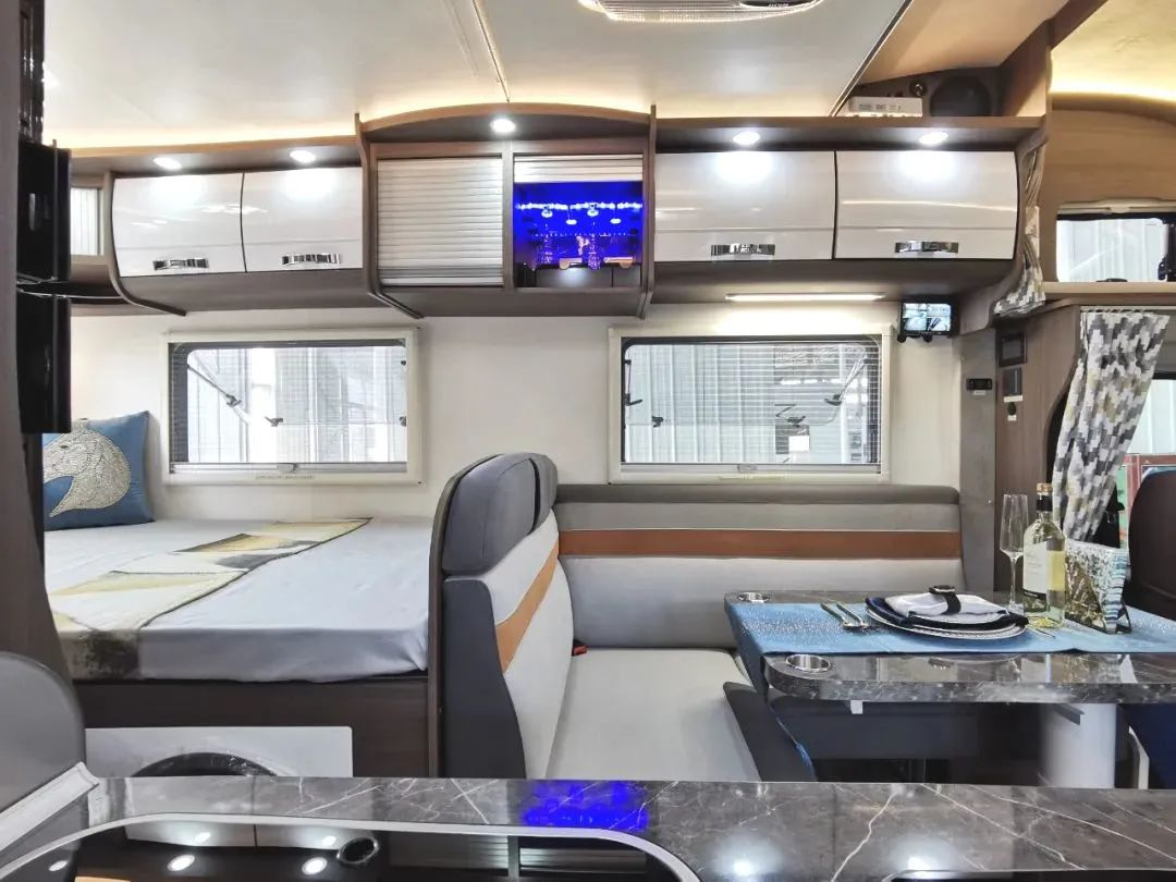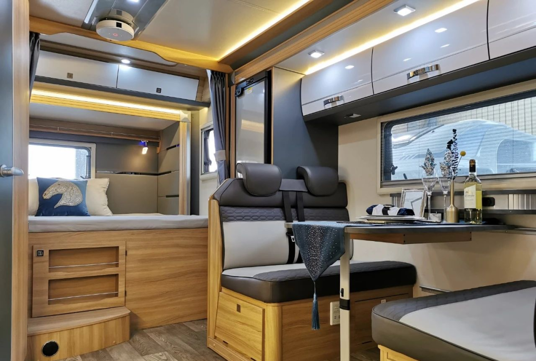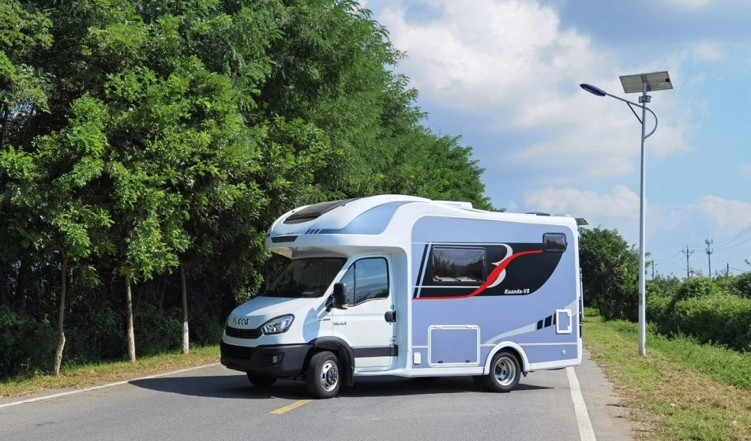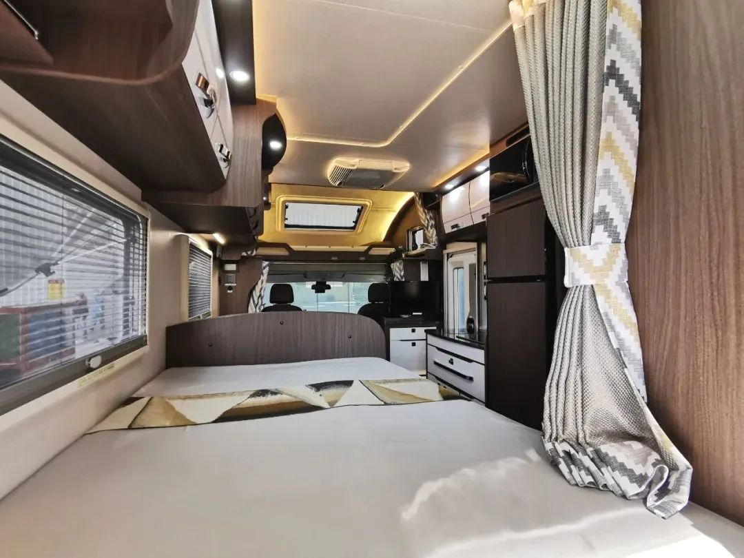 ● 采用依维柯欧胜房车专用底盘,符合国Ⅵ的排放标准,具备ESP 9.0、ABS、定速巡航、胎压警报等功能,同时搭载3.0T的柴油发动机,8AT手自一体变速箱,峰值扭矩400N.M,以及双150A的发电机;