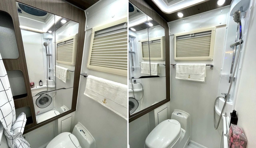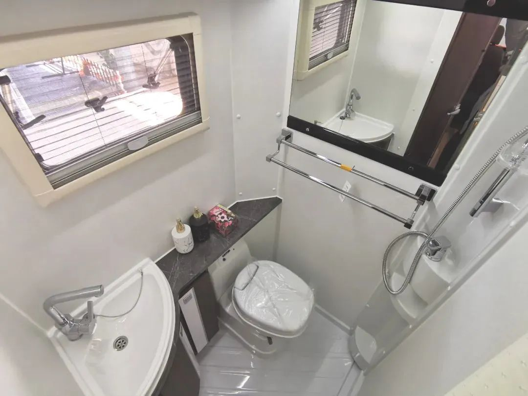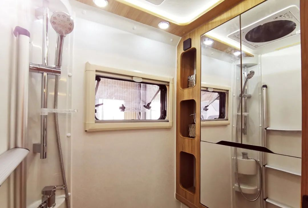 ● 水电配置方面:220升净水箱,60L灰水箱,900ah锂电,3000W逆变器,500W太阳能电池板。配有重力注水口、充电口,操作简单,外部淋浴方便室外用水。