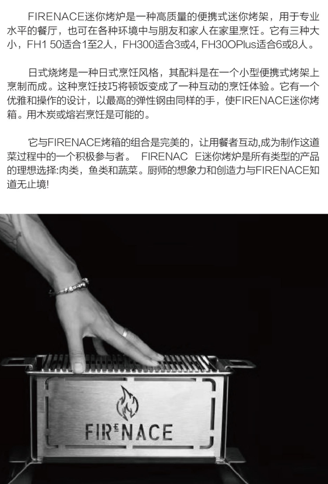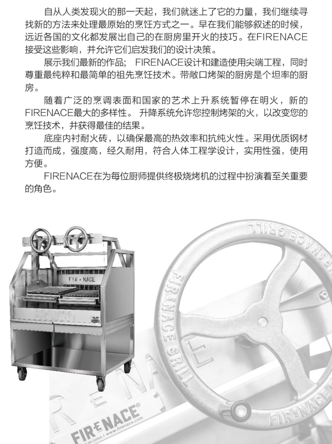 FIRENACE烤炉,上海荣津酒店设备工程有限公司,是一家以 “FIRENACE为主品牌,经营炭火烤箱、升降式烤炉、Mini扒炉、干式熟成柜、炭火烤鸡炉及定制厨房设备等系列产品。