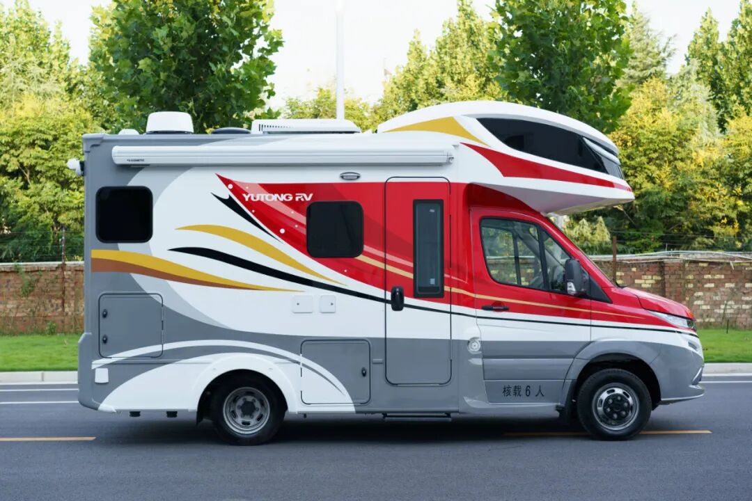 车身外尺寸为5990x2540x3180mm,核载6人,满足上蓝牌、C照可驾驶的要求;同时宇通“雍和”系列房车为双拓展车型,左全拓+尾半拓,驻车时的内部生活空间进一步增加;