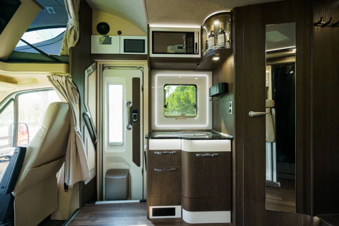 与会客区相邻的是房车专用乘客门与车内厨房区;