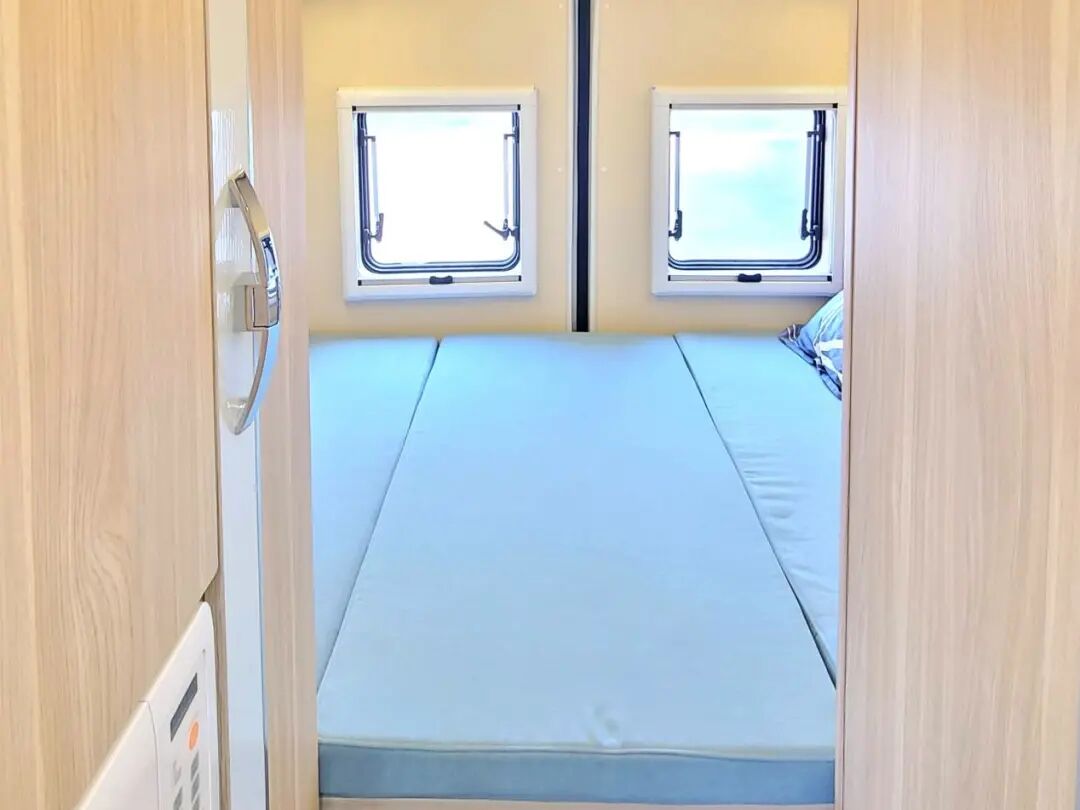 床铺位于车辆后方,采用横置床设计,超大宽度,完全可以满足两个成年人休息使用。床铺顶部和下方均设有储物空间,不用担心东西放不下。打开车尾门即可轻松拿取行李,非常方便。