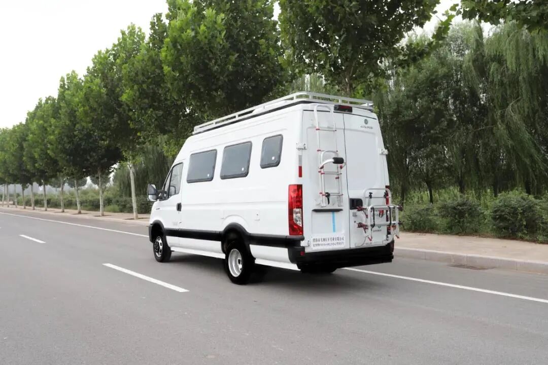 车尾采用对向外开门设计,驻车时可双向打开加强车内采光、通风的效果;尾部同时支持选装自行车架、后爬梯;