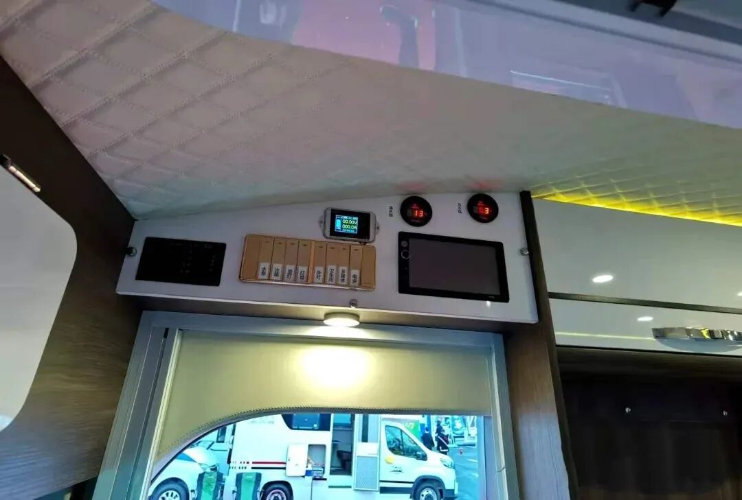 水电配置:120L清水箱、60L灰水箱;3000W逆变器、800AH锂电池、400W太阳能硬板、库仑计、12V控制面板、烟雾报警器、热水暖风系统等。
