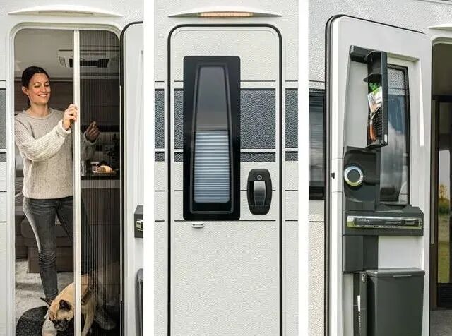 这款房车的上车门位置配置也很丰富,配有三点式门锁,保护驻车安全;纱窗门,保证车内空气流通的同时还能防止蚊虫飞入车内;垃圾箱,存放垃圾方便快捷。