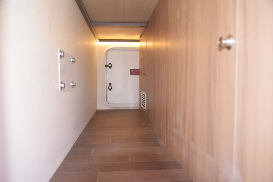 尾部横床是可拓展的区域,拓展后的横床尺寸为2200x1250mm,床铺上方是行车空调的出风口及换气扇。