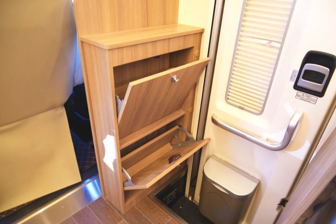 车门处设有双层鞋柜,鞋柜上方的小吧台可随手放置小物品。