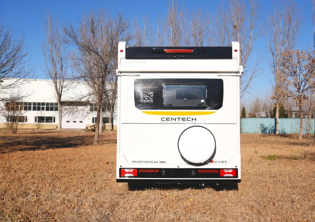 中天领航者房车的整车尺寸为5990x2520x3070mm,六米之内的长度可上蓝牌;车身左侧和尾侧拓展机构的设置能大幅度地增加房车的内部使用空间;首创的全新梭形顶部造型设计也着实让人眼前一亮,在有效降低整车车高的同时也能保有额头床的存在,颜值方面也随之有所提高,不会给人特别笨重的感受。