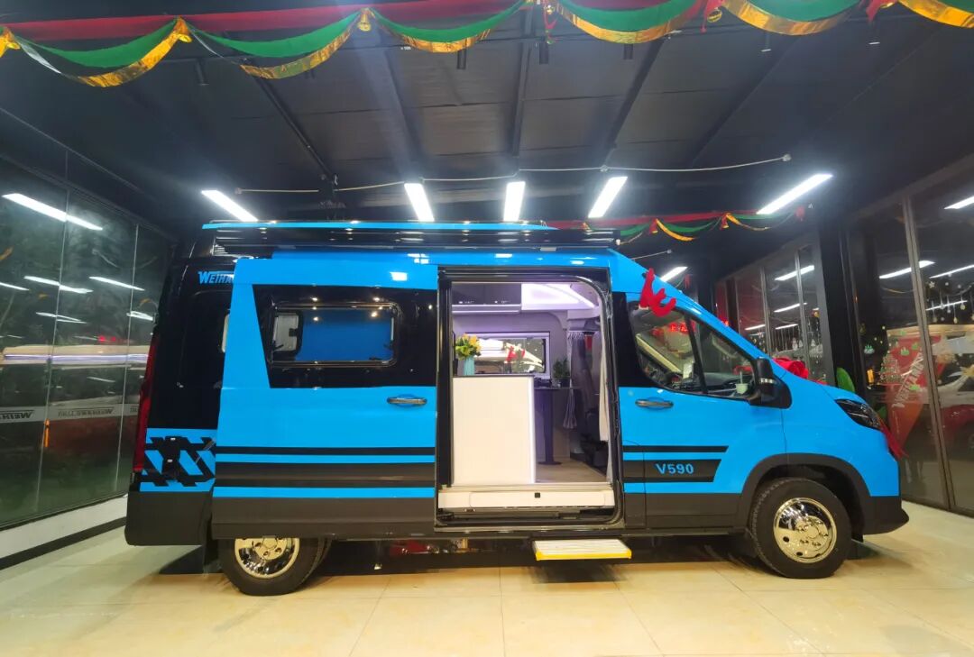 时值年末,卫航又出新款房车了,着实令人激动又期待。卫航2021款V590摩登时尚款整个车身以亮眼蓝色为主,搭配简单的黑色线条,时尚又大气。整车为经典的B型房车,小巧精致,满足多种使用需求。