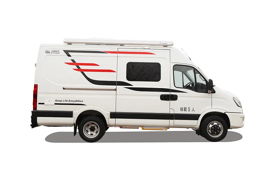 在底盘动力方面,由依维柯底盘打造而成,搭载福特3.0T柴油发动机,符合国五排放标准。匹配8速自动挡变速箱,动力强劲,可以说是B型车的外观,C型车的配置。最高车速可达130km/h,跑高速也没有问题。上蓝牌C照即可驾驶,核载人数为5人,适合一家人出游驾驶。