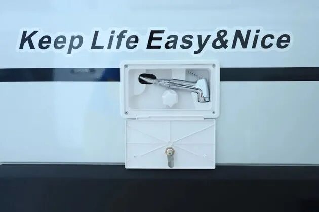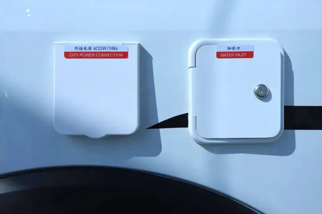 外部功能配置有手动遮阳棚、电动平推式一级伸缩踏步、市接电口,注水口等。