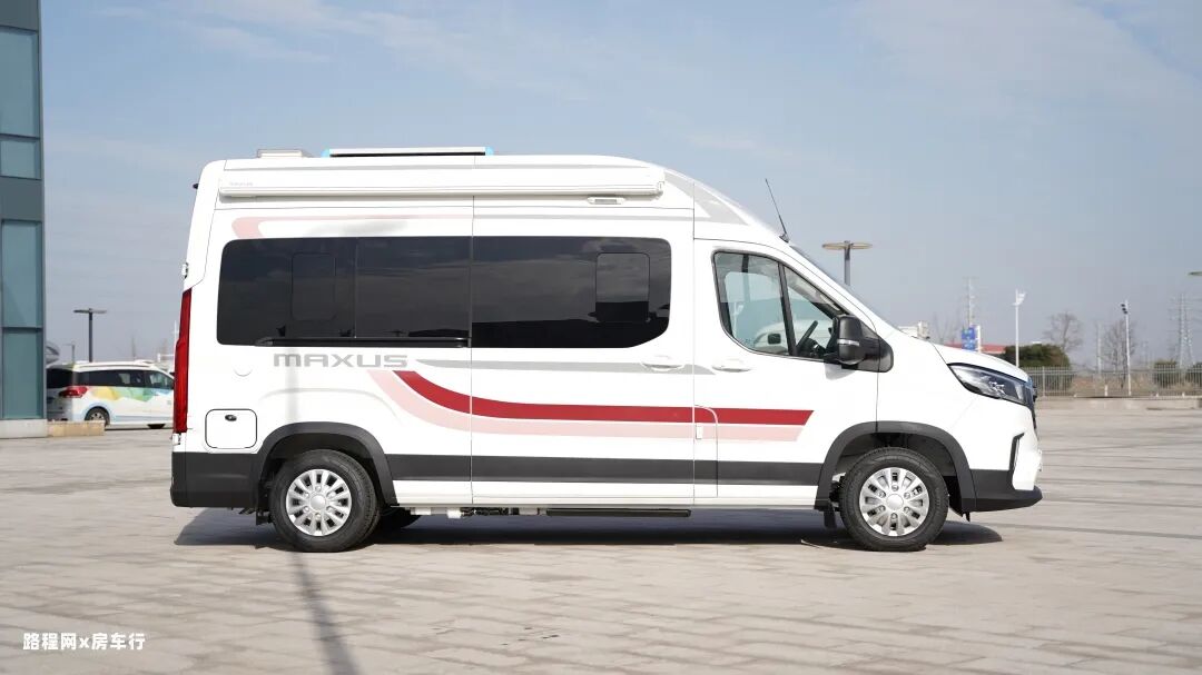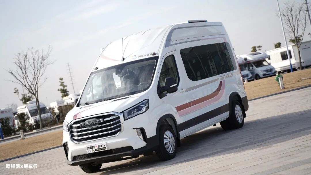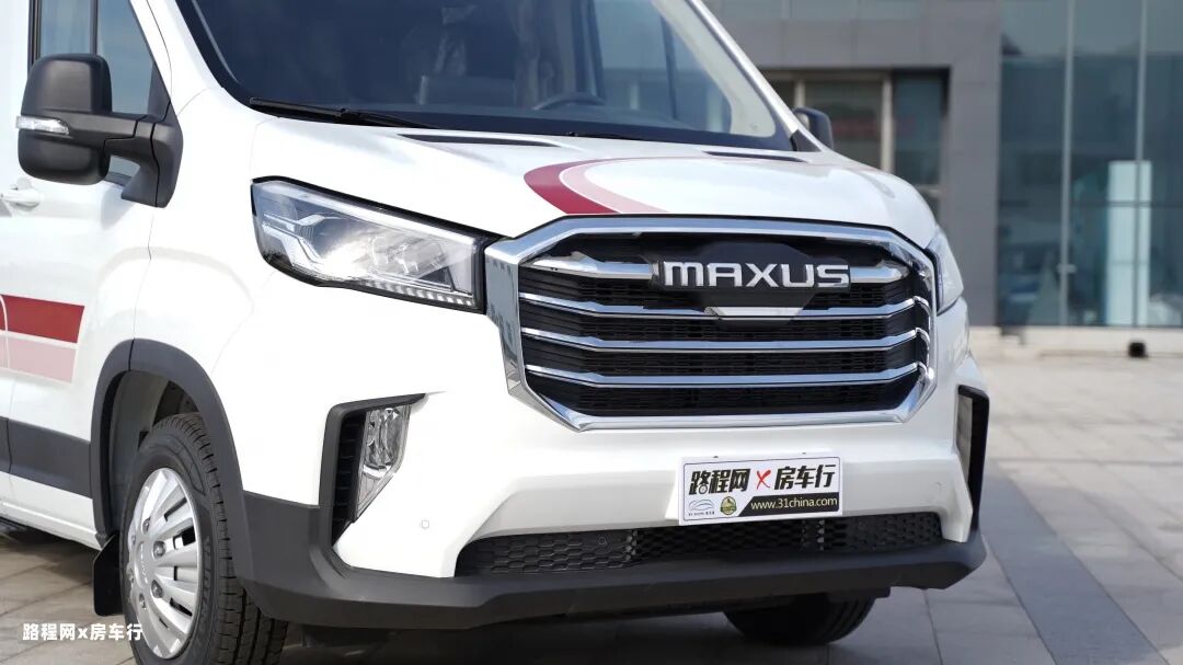 上汽大通MAXUS旅行家V90房车的整车外形完美地展示了宽体轻客的优雅姿态,车头部位“MAXUS”的logo是原厂房车的专属标志,粗狂的横镀铬前格栅大气豪华。