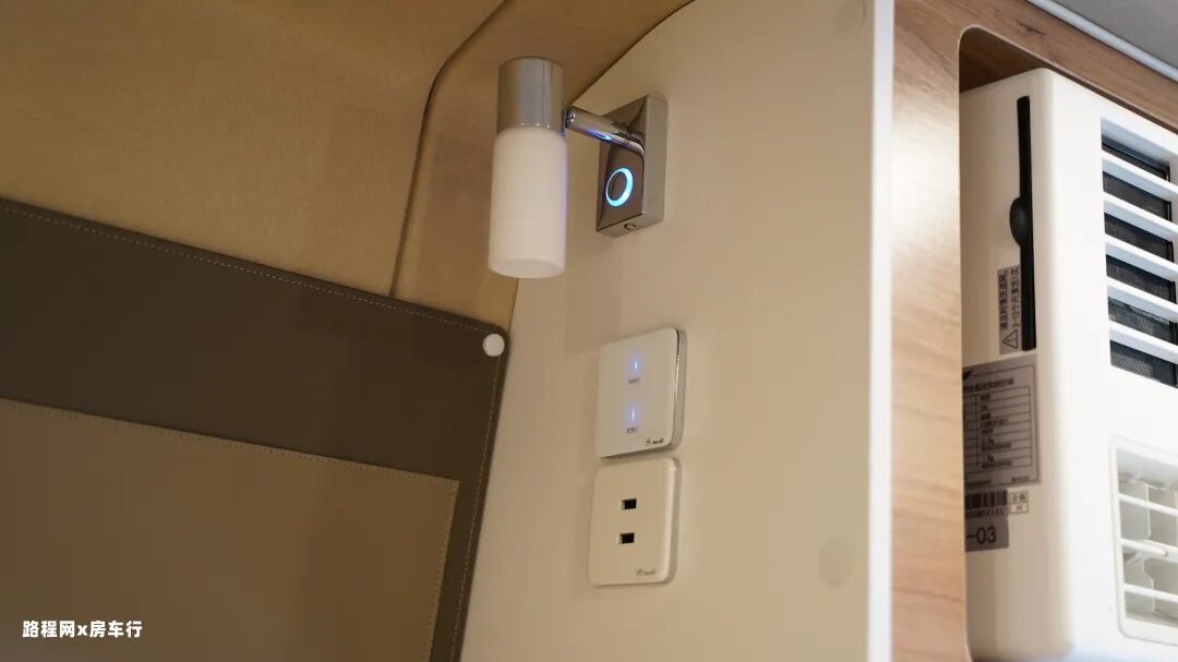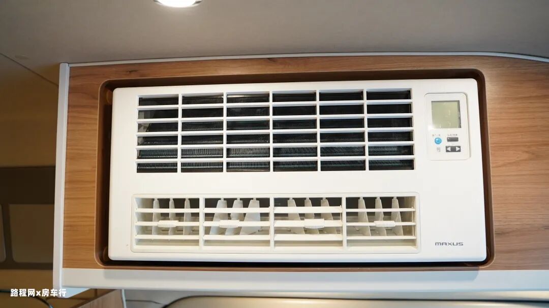 在双人座椅的上方是48V直流变频空调,旁边的小空间是可存储一些小物件。