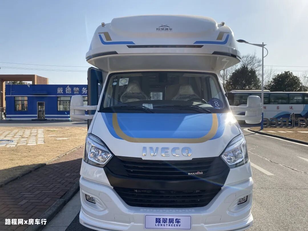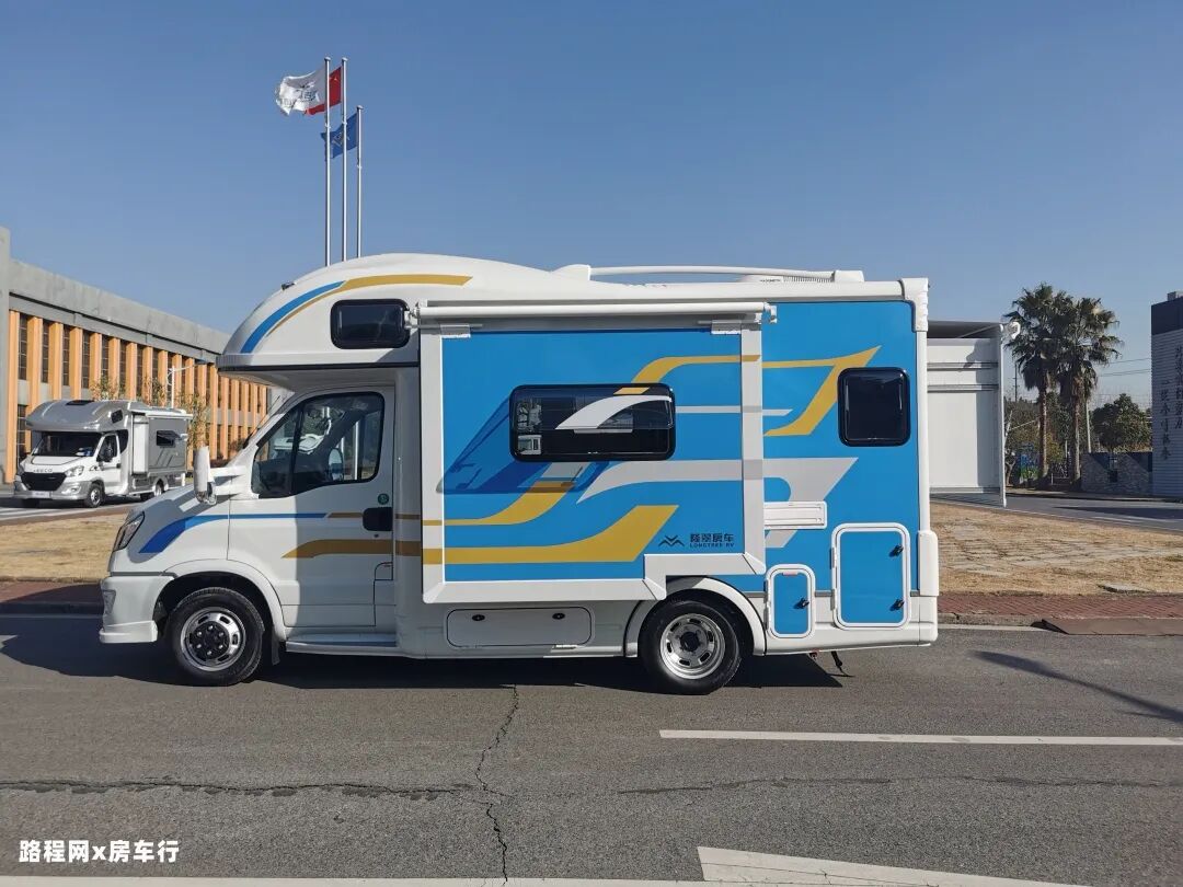 这款新车为典型的C型房车,在长度、高度等方面满足蓝牌C照驾驶。外部配有房车专用遮阳篷、市电接口、重力注水口、城市加水口、水泵、电动踏步、储物舱等。