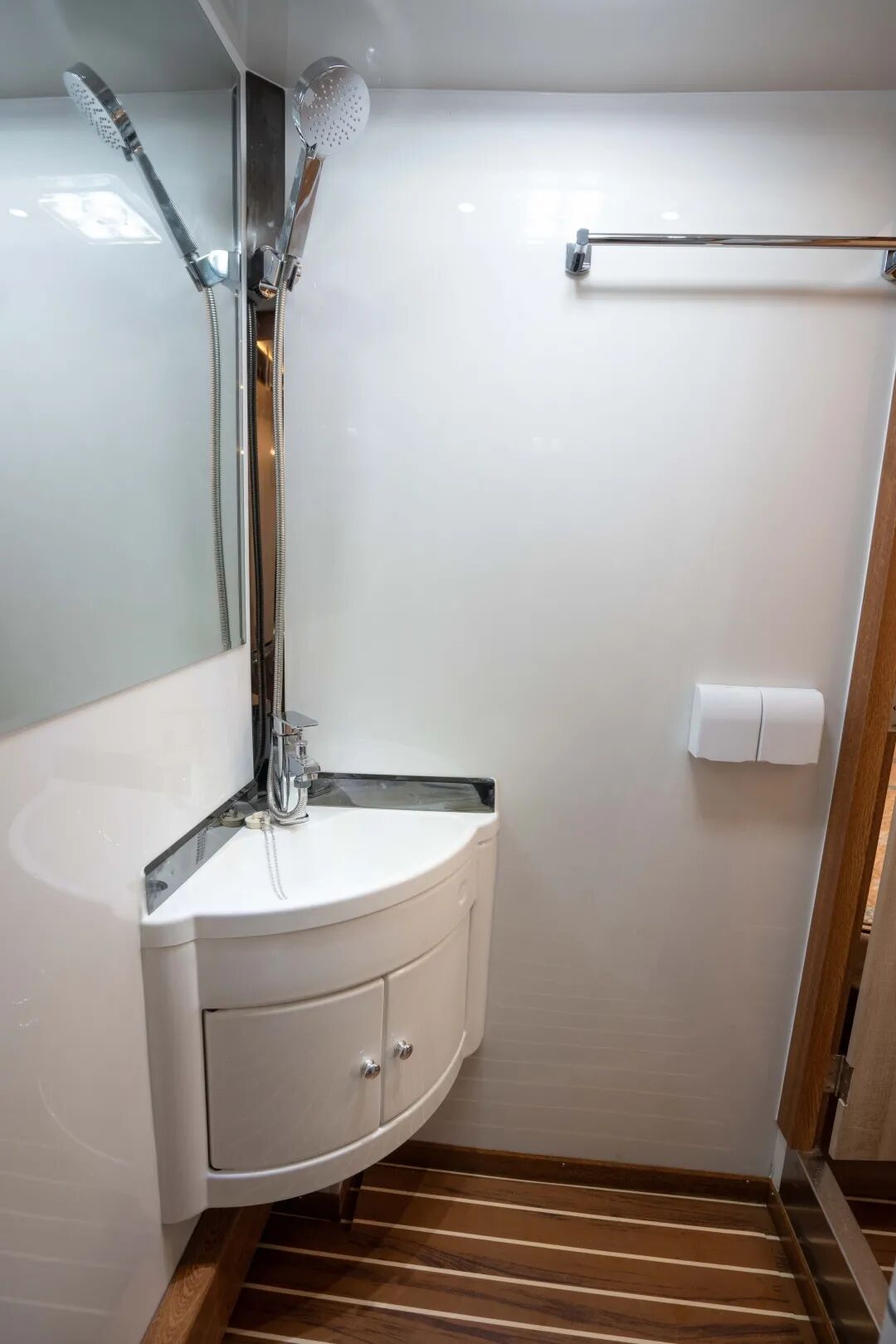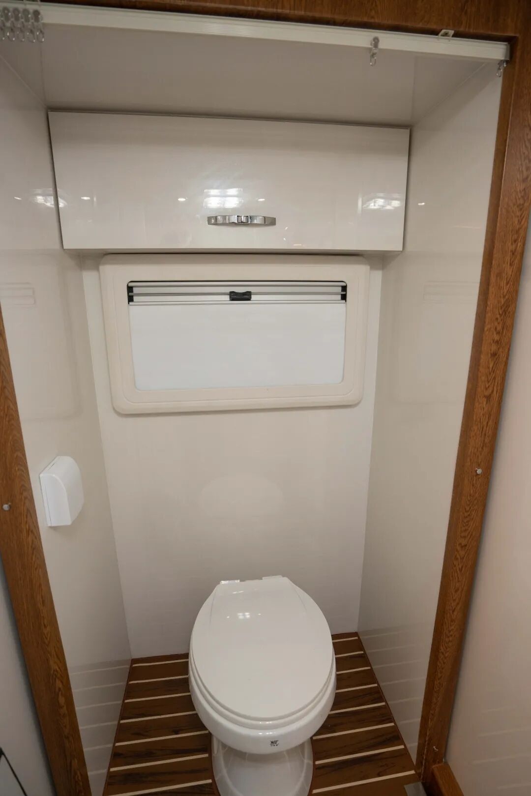 至于卫浴区也是采用了中意房车独有的专利技术伸缩式卫生间,有效地解决房车卫生间设计结构与空间尺寸上的制约,使得已经相当充裕的卫生间空间更加宽敞(扩展后卫生间面积可达1.5㎡)。