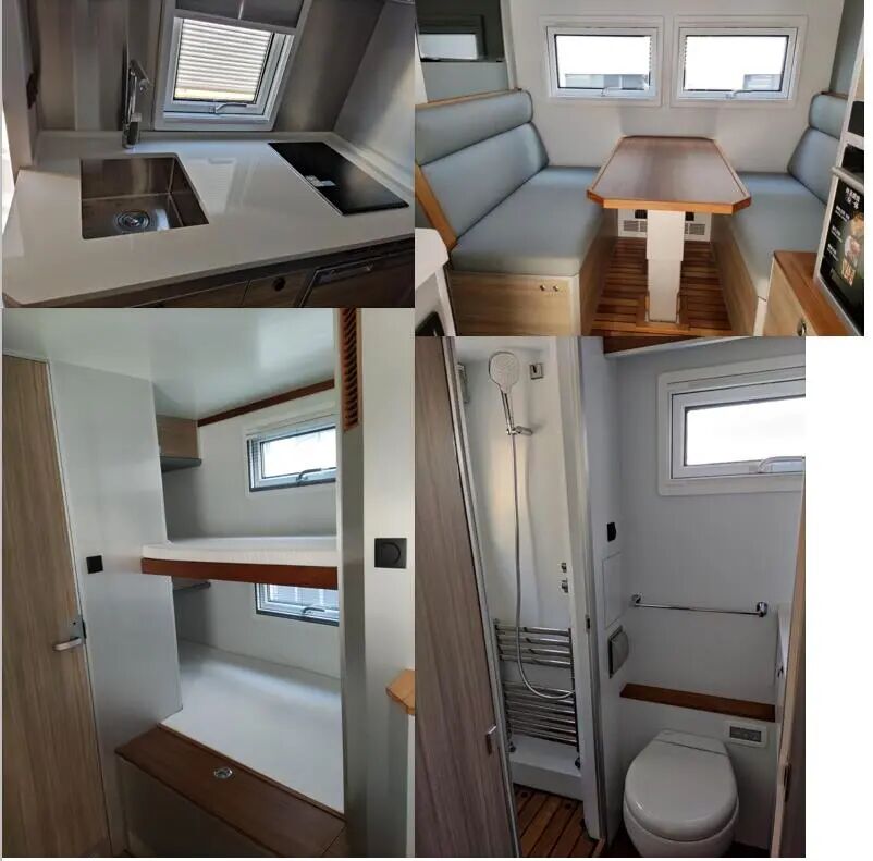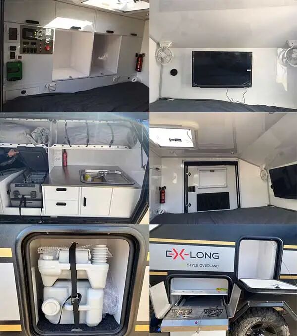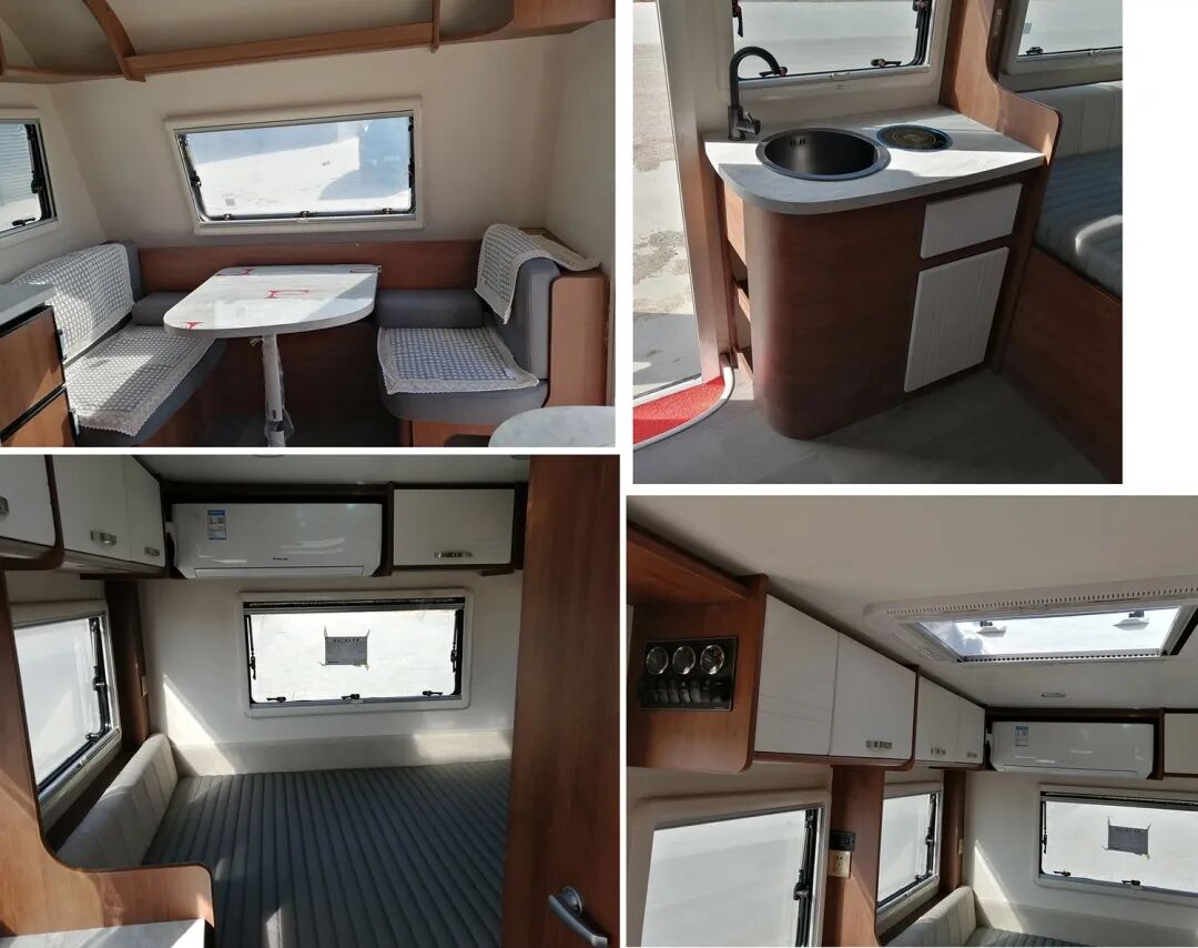 顶部封闭,不可开启,该车非乘用车,行驶过程中不可载人;牵引杆深入量为45mm,连接器最大负荷100kg。厢体内安装有床铺、桌柜、卫生设施等旅居专用设备.