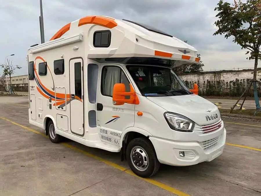 整车装配卫生间,储物柜,床铺等旅居专用装置;随底盘选装电动侧踏步、前格栅、LED前组合灯、LED后尾灯、日间行车灯、轮圈、轮饰盖、后尾标、前雾灯、后摄像头、牌照装饰板.