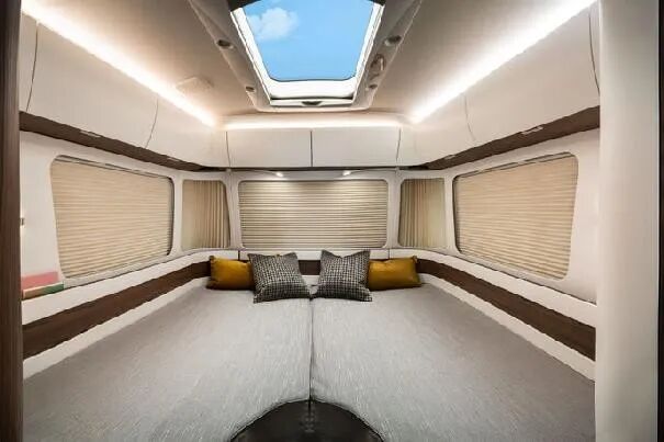 内部配有顶置空调,可以保持车内始终处于最佳温度;集成在家具内的通风管路系统,可确保热空气在整个车辆中分布均匀,从而确保最佳的加热效率,还可以防止冬天窗户上的冷凝水形成;