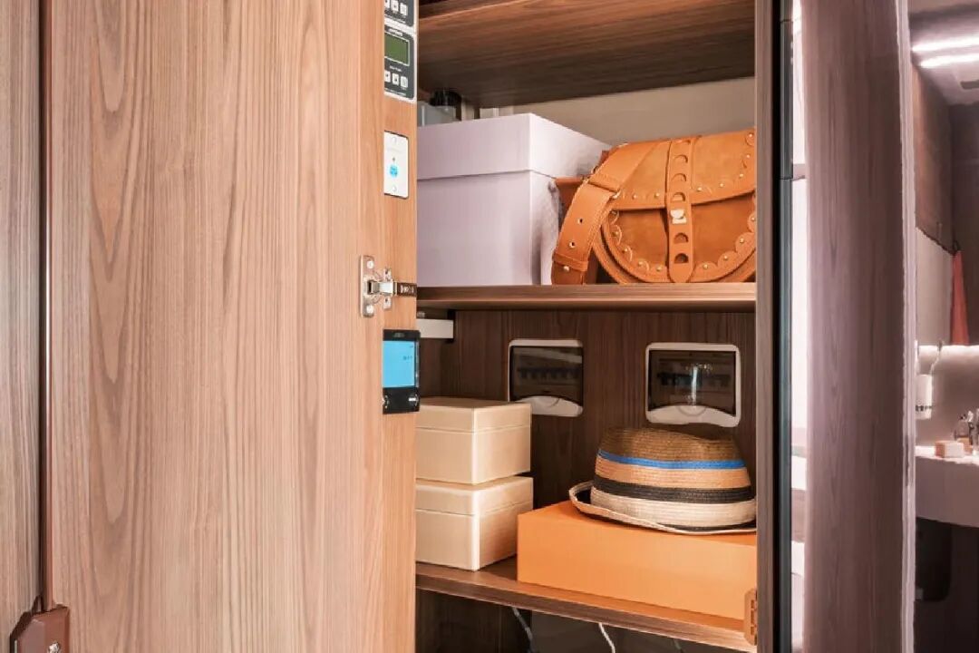 落地衣橱与酒吧隔间紧挨,从侧面打开,足够大的储物隔间可存放各类生活用品;