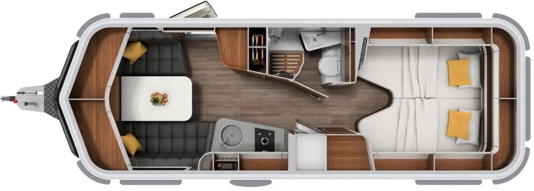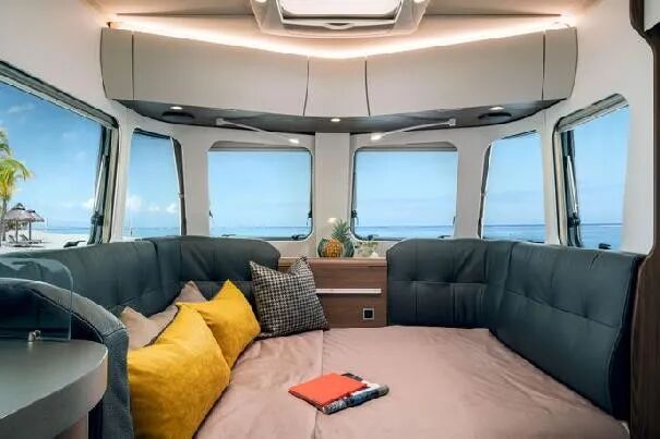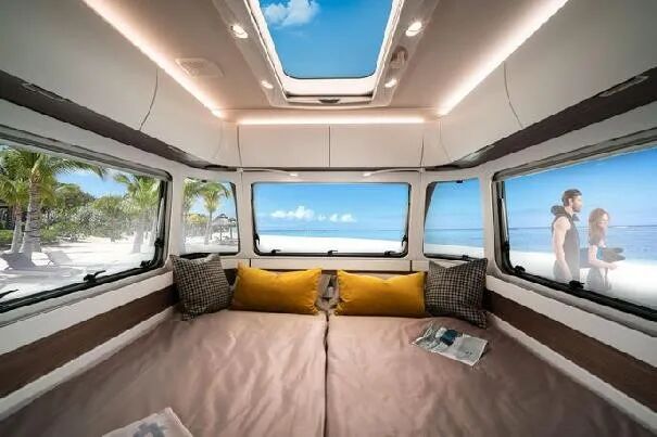 相比传统拖挂式房车,Eriba Touring 820更像精心装潢过的移动小“豪宅”,类似一室一厅设计的基础上,卧室、客厅、厨房、独立卫浴间、衣帽间等设施全部具备,充分满足日常生活需求;